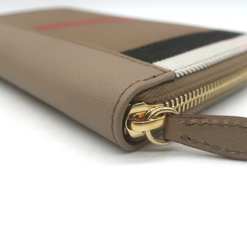Burberry House Check Large Zip Around Wallet Chestnut Beige NEW