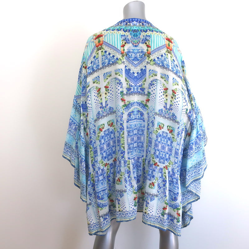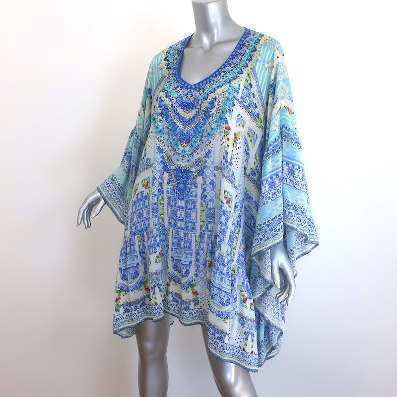 Camilla A Night To Remember Gathered Hem Short Dress Blue Printed Silk One Size