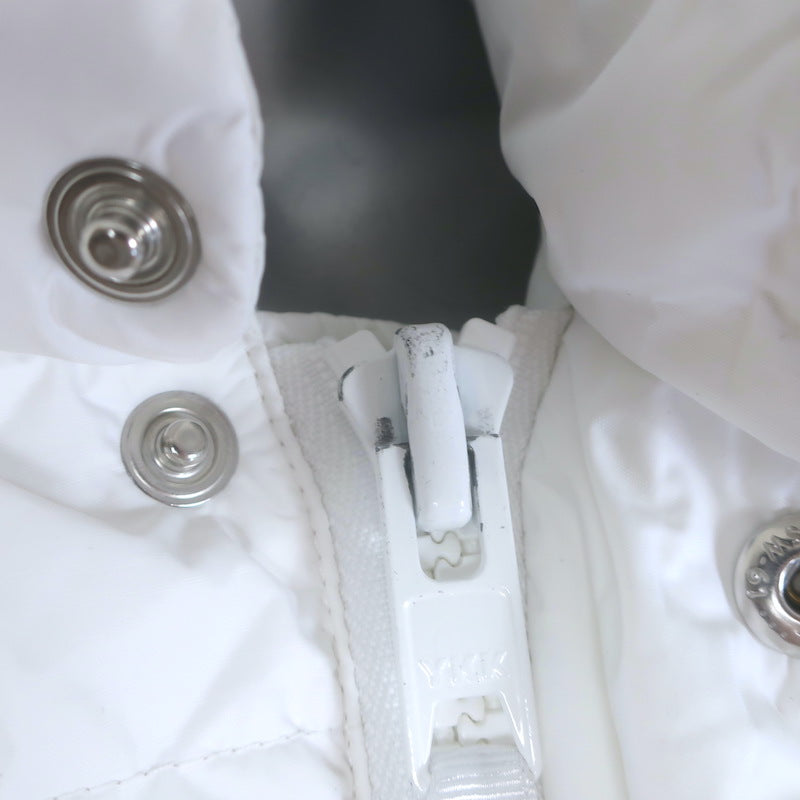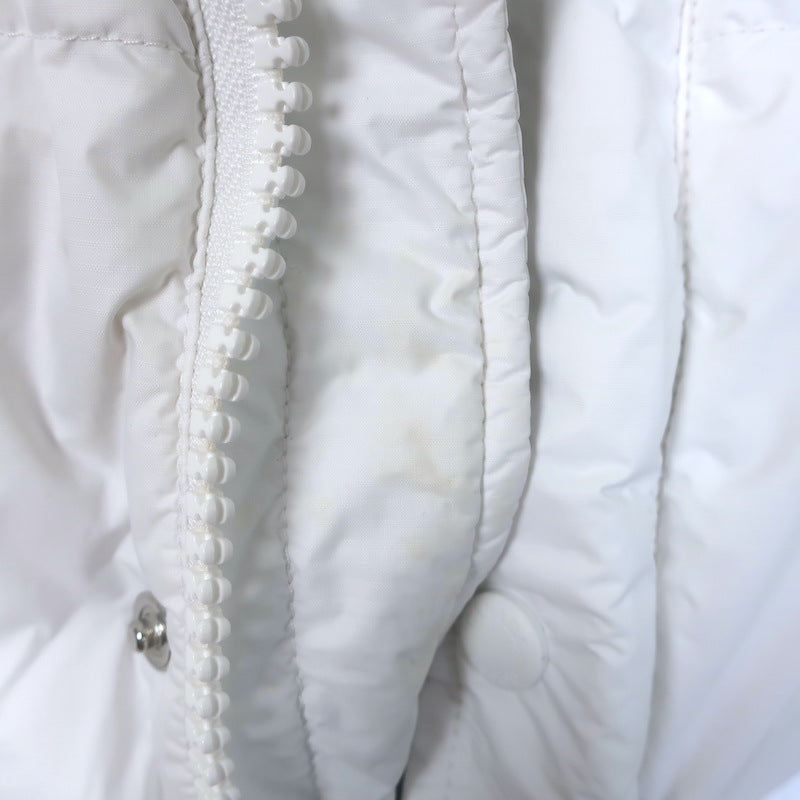 Pre-loved. Good condition. Small black smudge on right shoulder. Faint yellow spot on placket is hidden when zippered. Tiny gray speck on back. Coating is chipping off of zipper pull. Retails for $650!