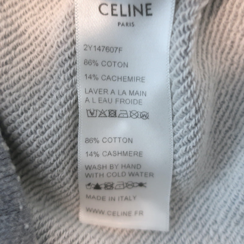 Celine Logo Hoodie Sweatshirt Heather Gray Cotton-Cashmere Size Extra Small