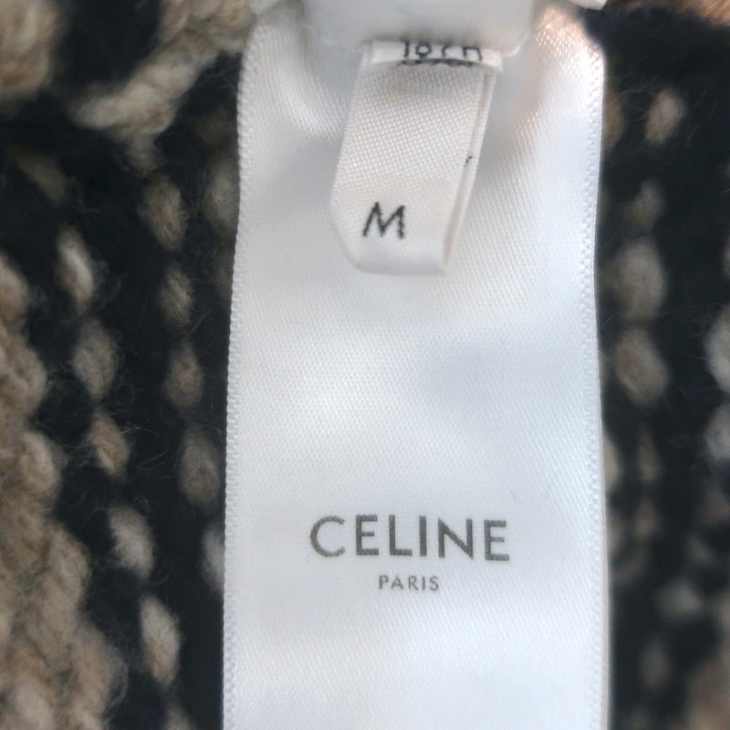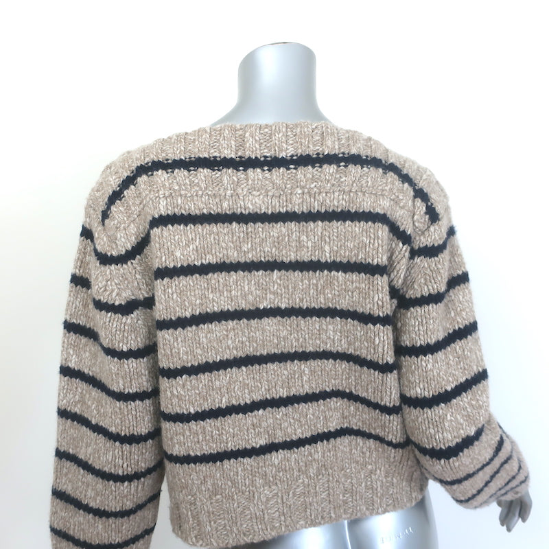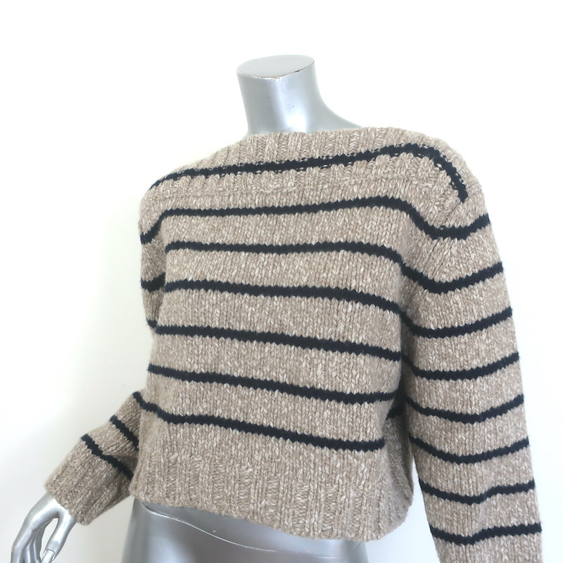 Celine Mariniere Striped Boat Neck Sweater Taupe & Navy Wool Size Medium