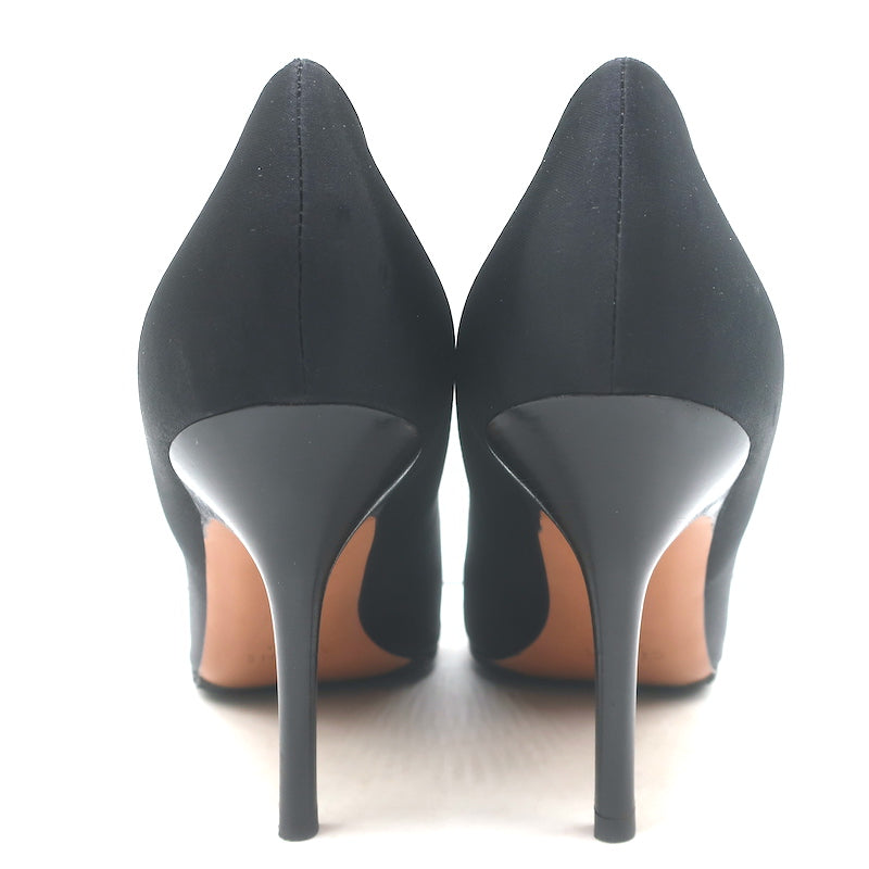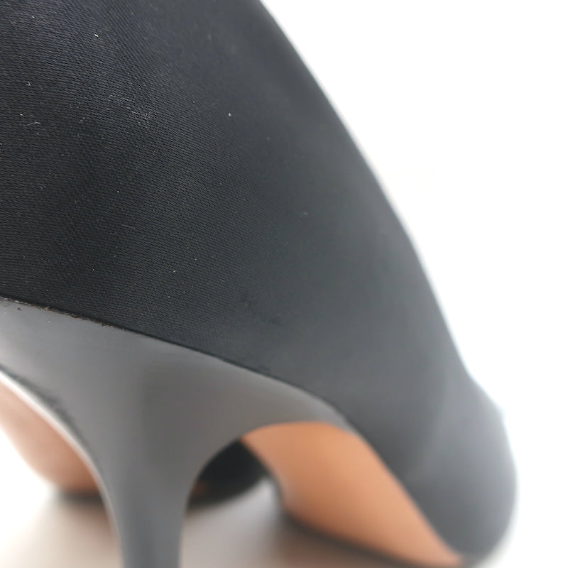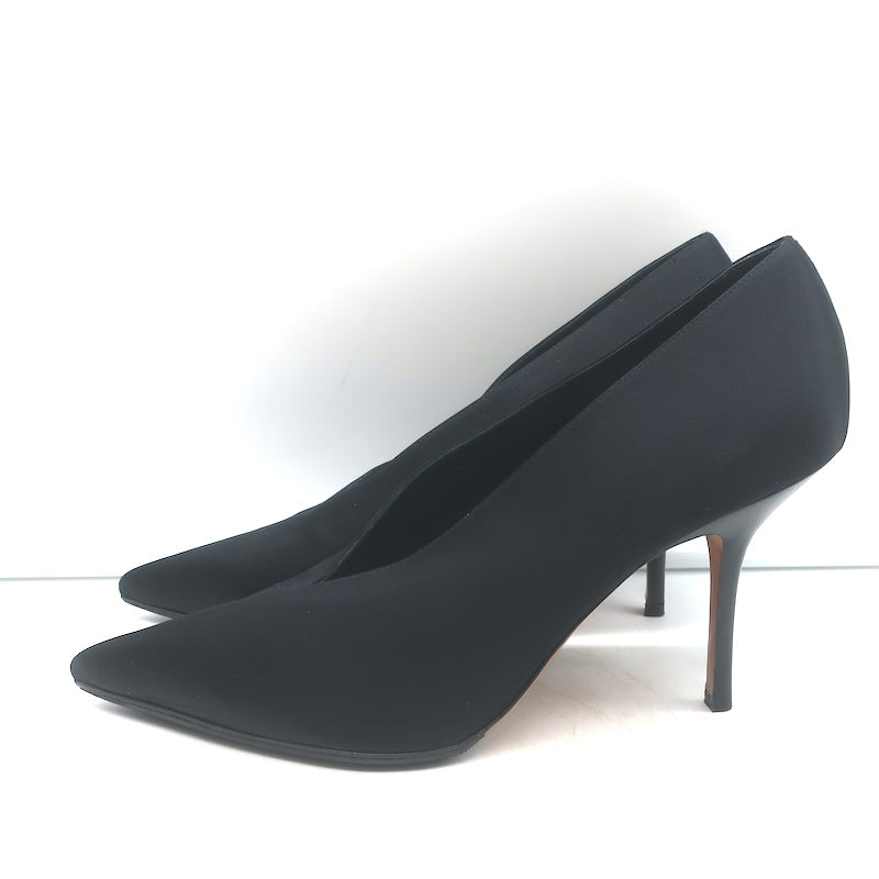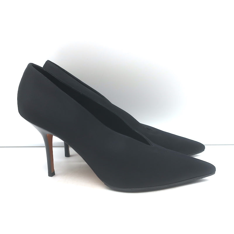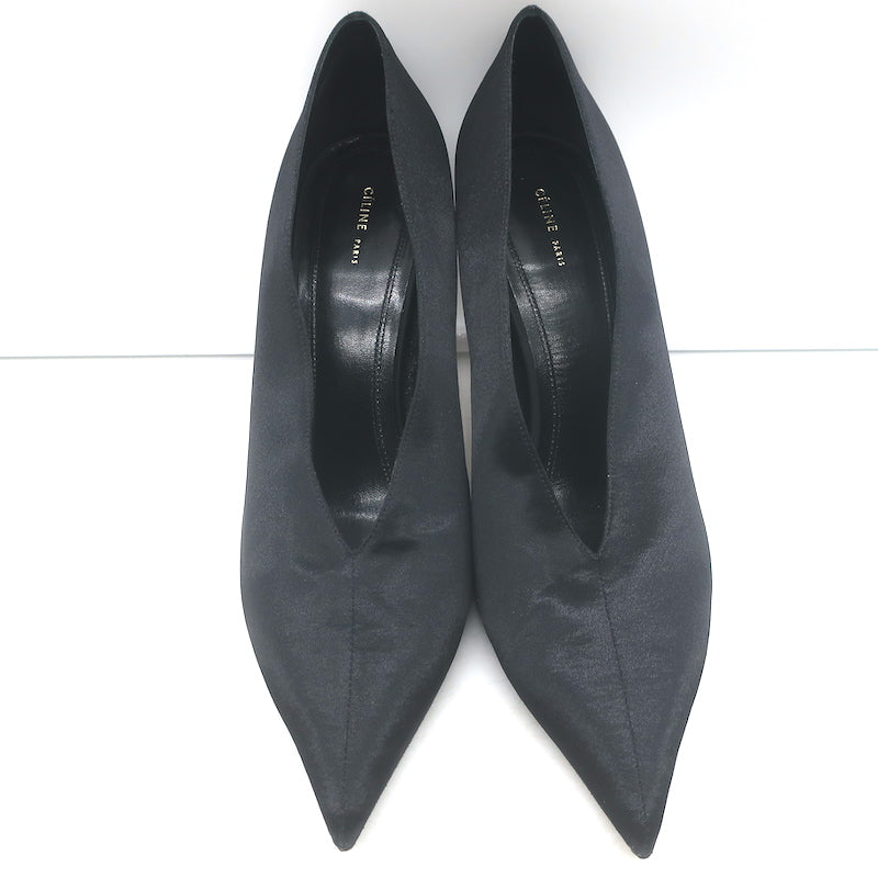Celine V-Cut Pumps Black Satin Size 40 Pointed Toe Heels