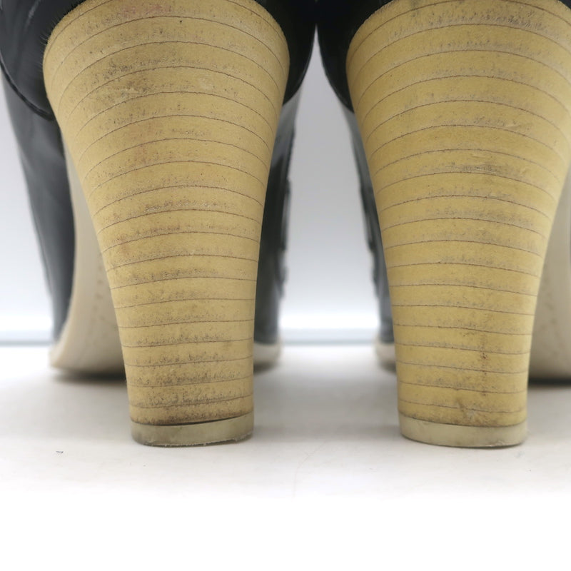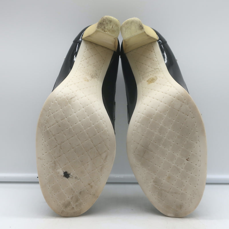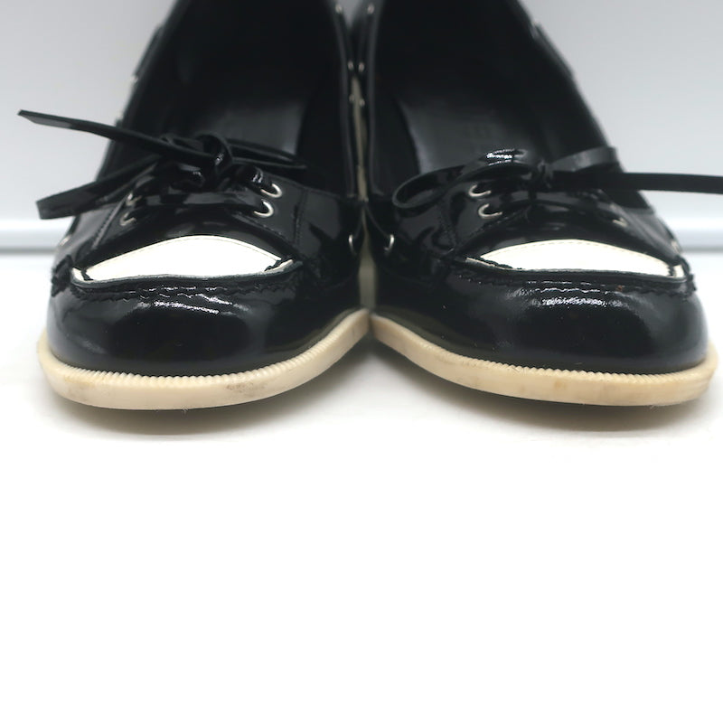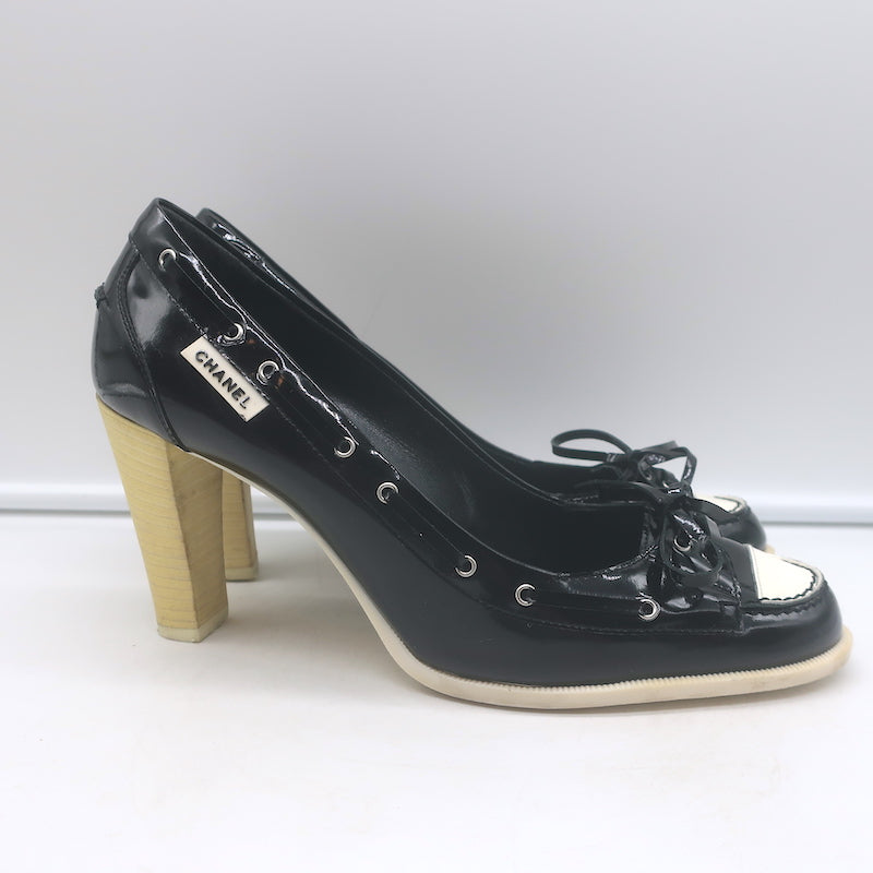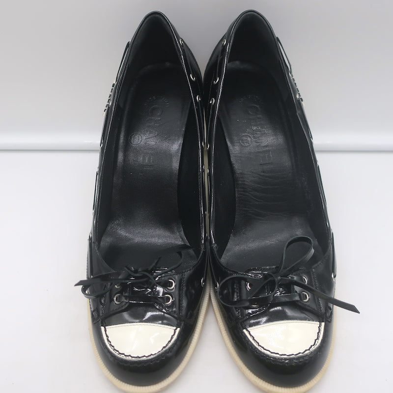 Chanel 06P Bow Cap Toe Pumps Black & White Patent Leather Size 39