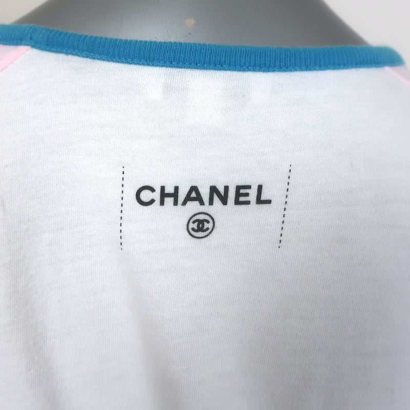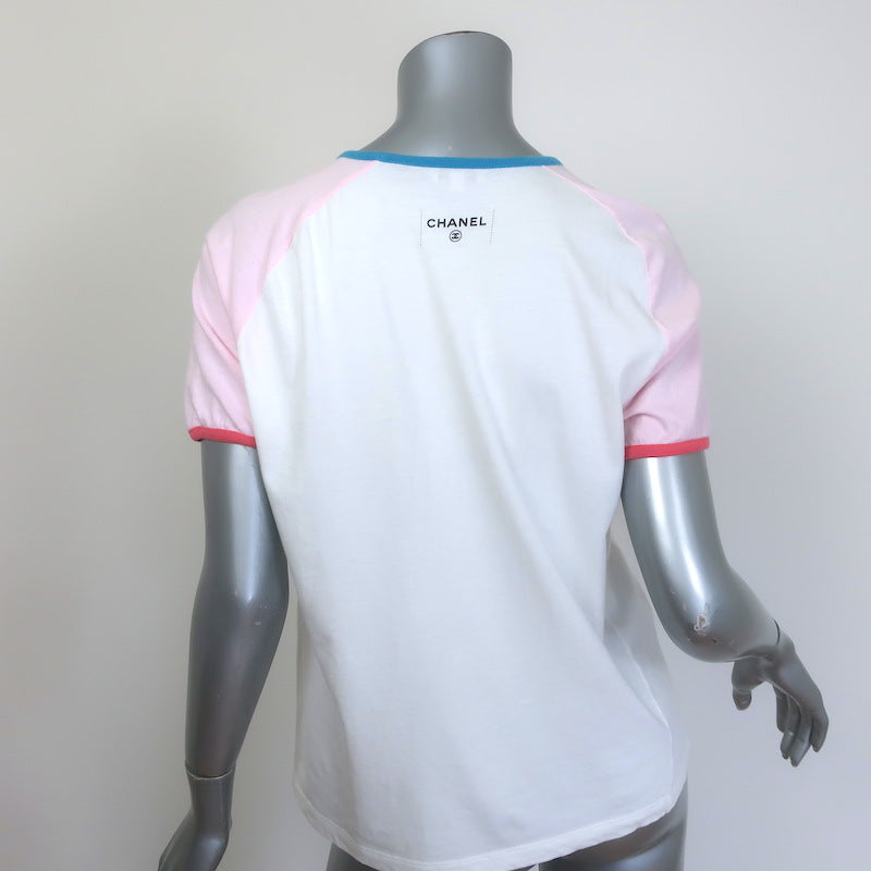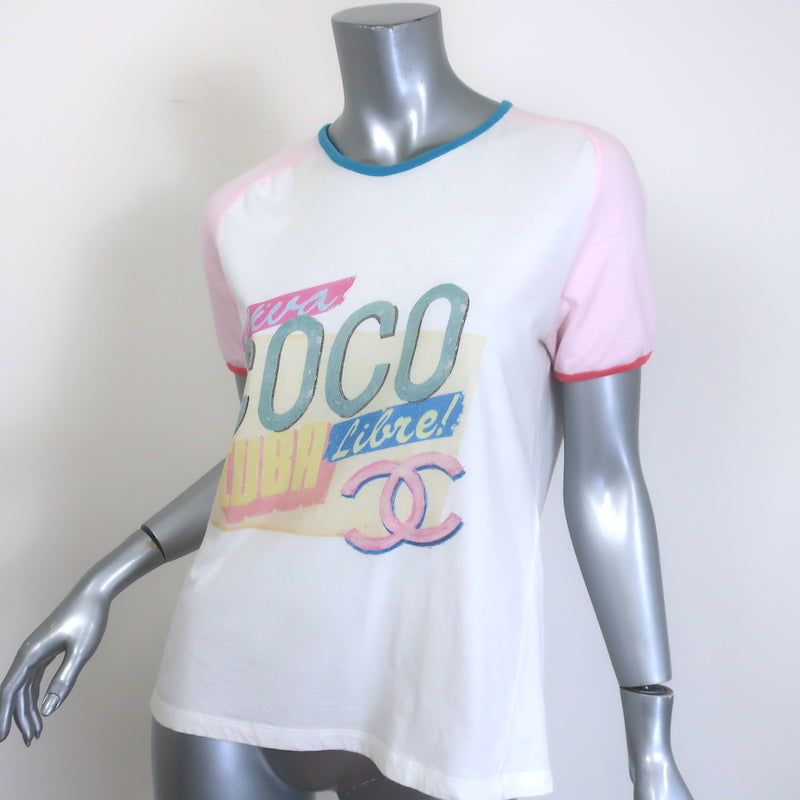 Chanel 2017 Viva Coco Cuba Libre T-Shirt White & Light Pink Cotton Size Medium