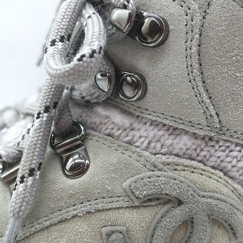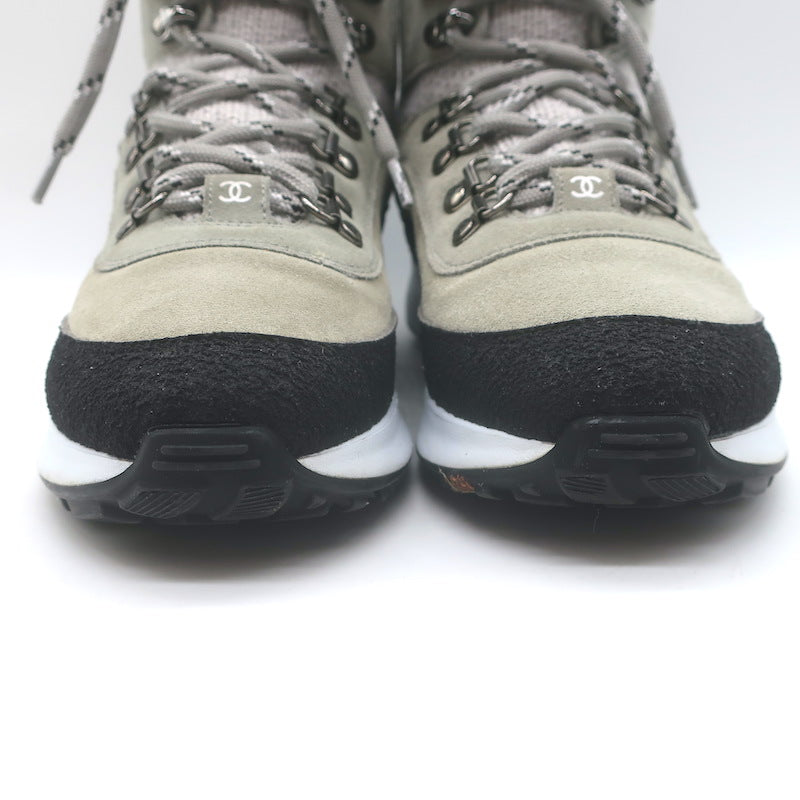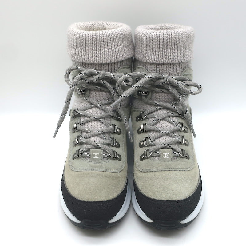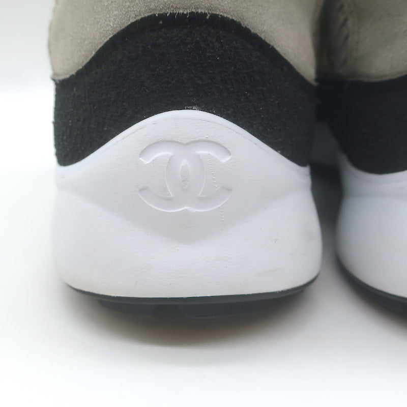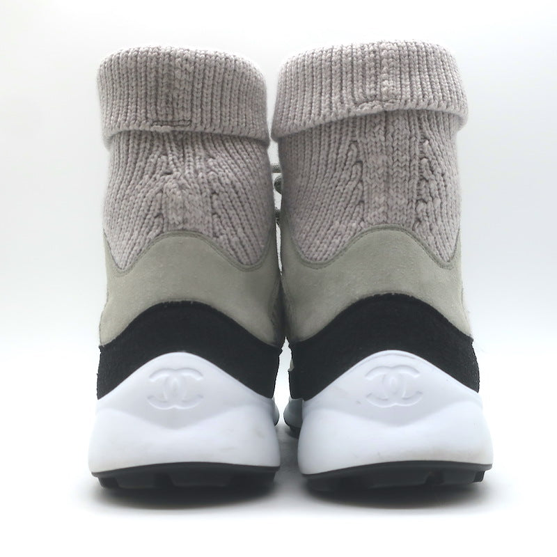 Chanel 21K CC High Top Sock Sneakers Taupe Suede Size 36