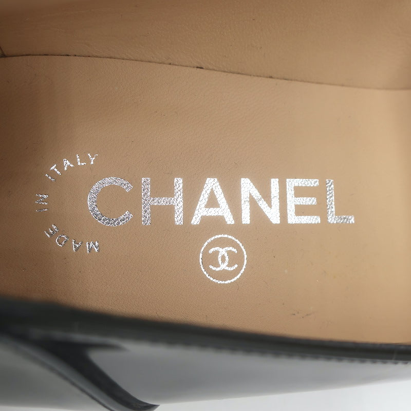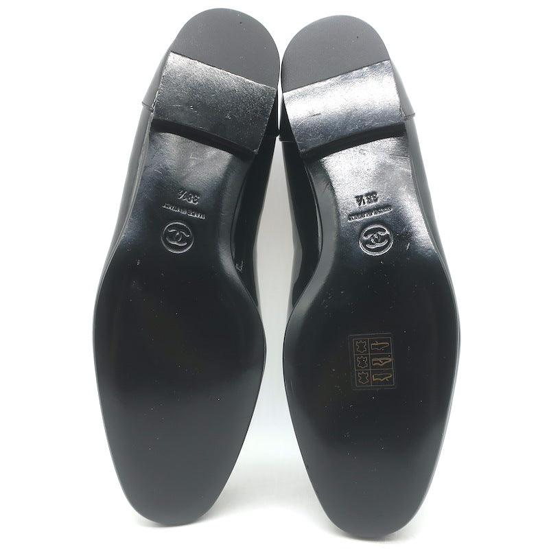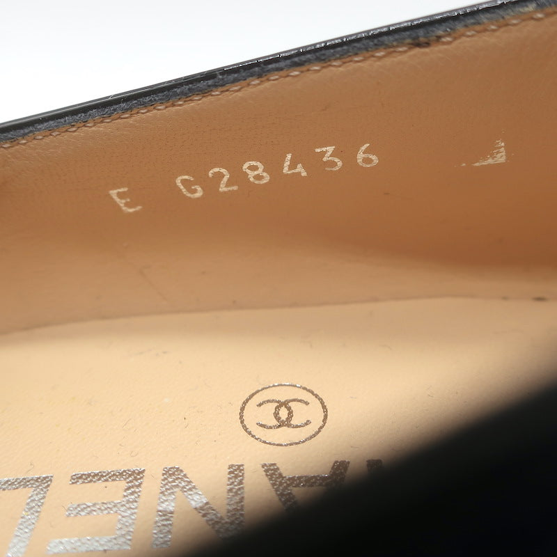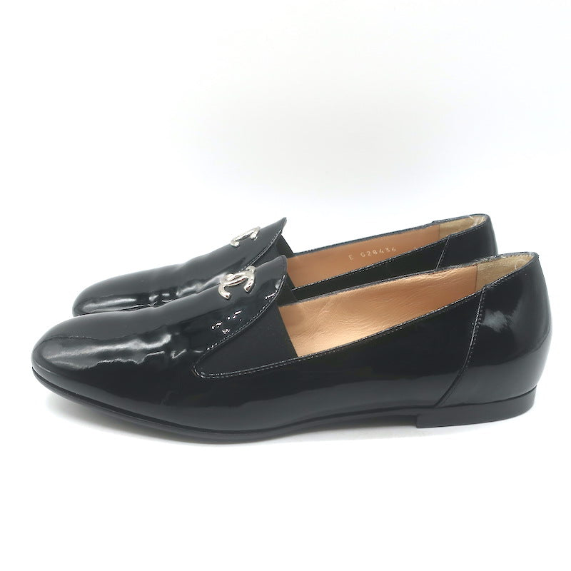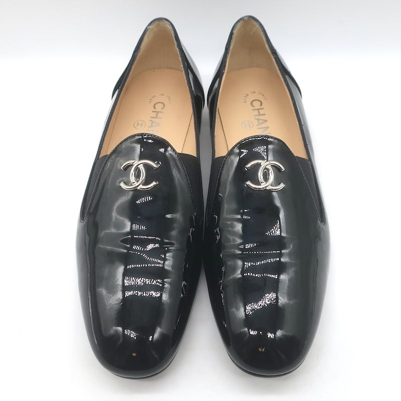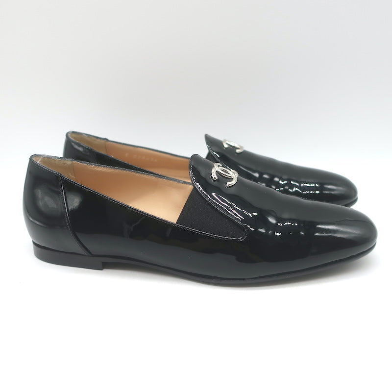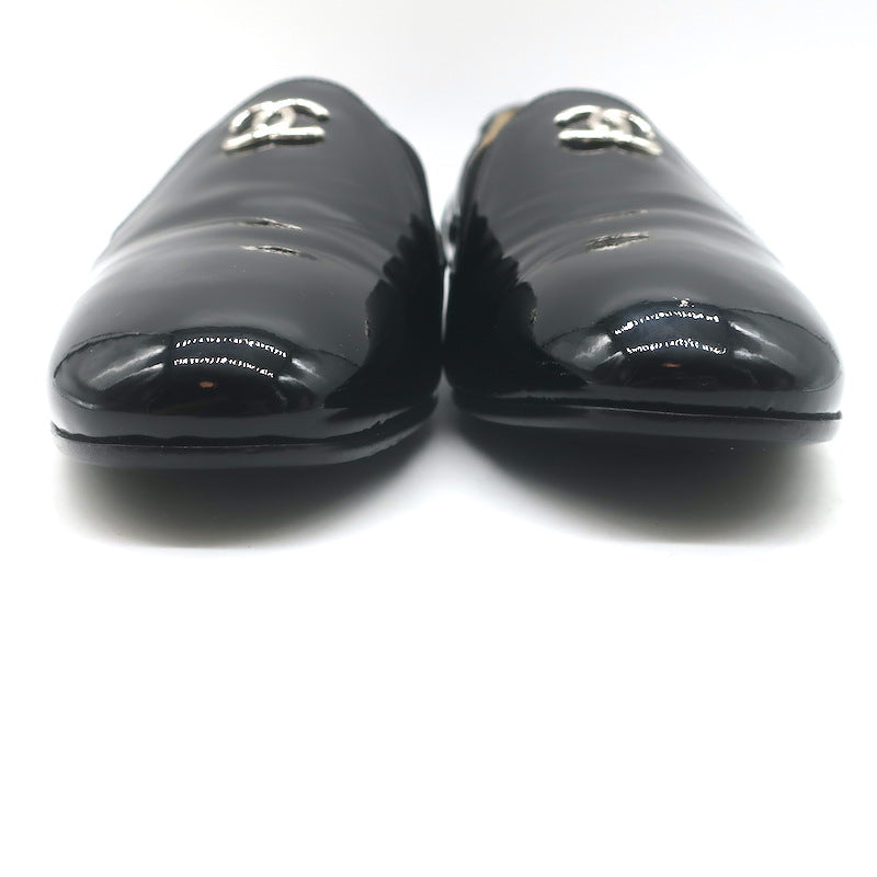 Chanel CC Smoking Slippers Black Patent Leather Size 38.5 Slip-On Loafers