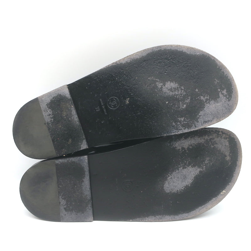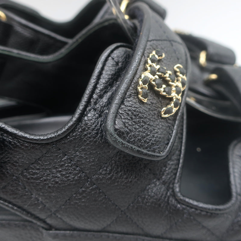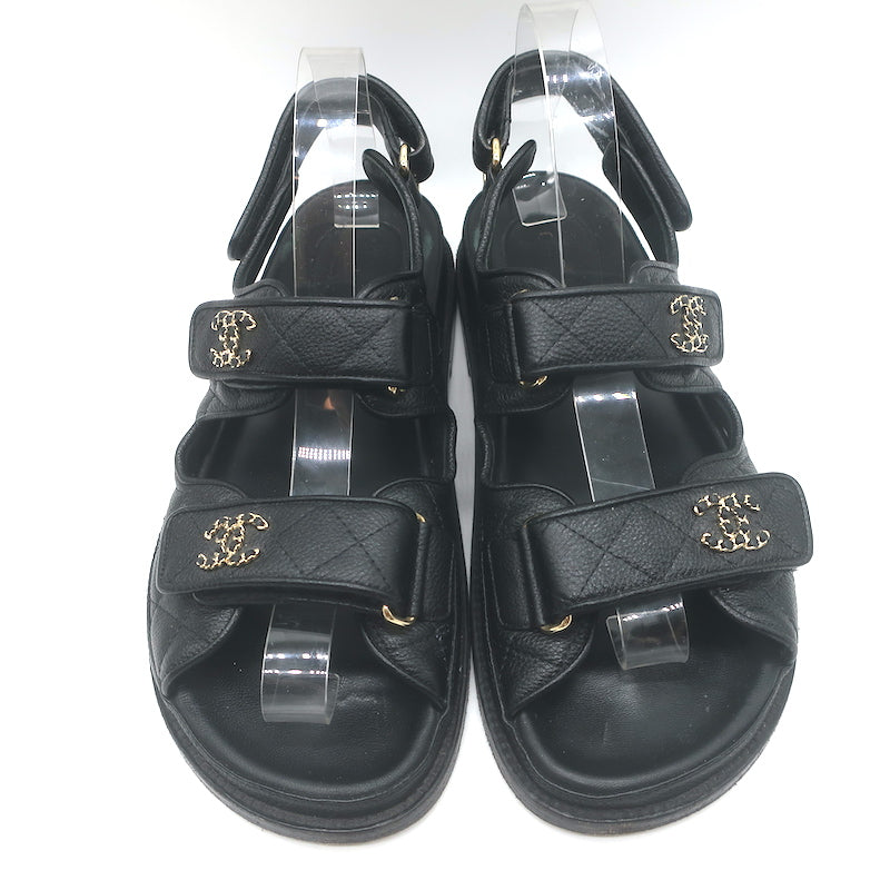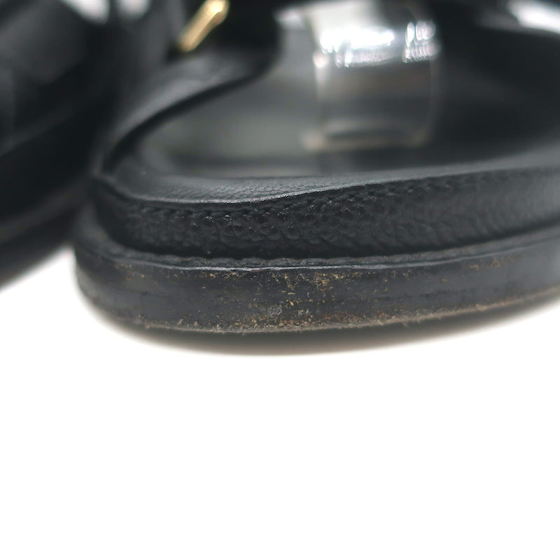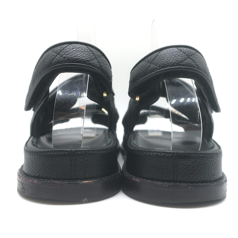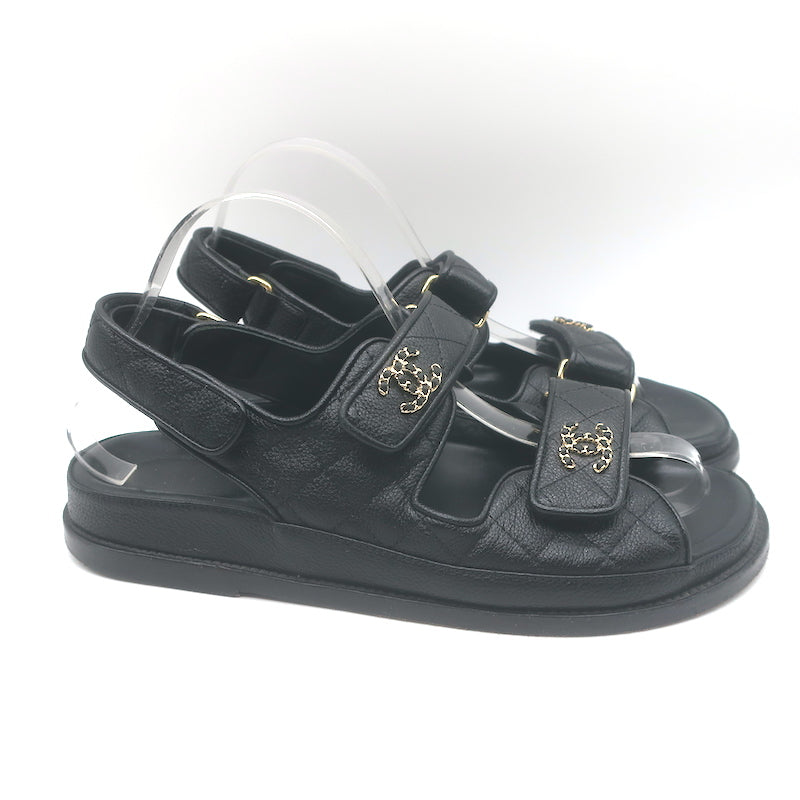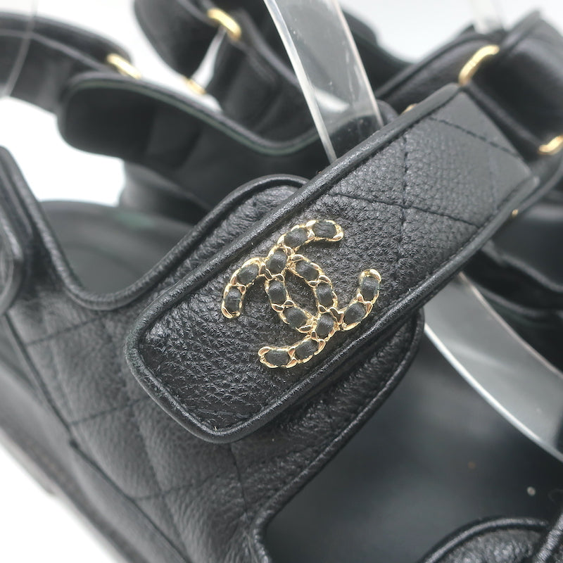 Chanel Chain CC Dad Sandals Black Quilted Caviar Leather Size 39