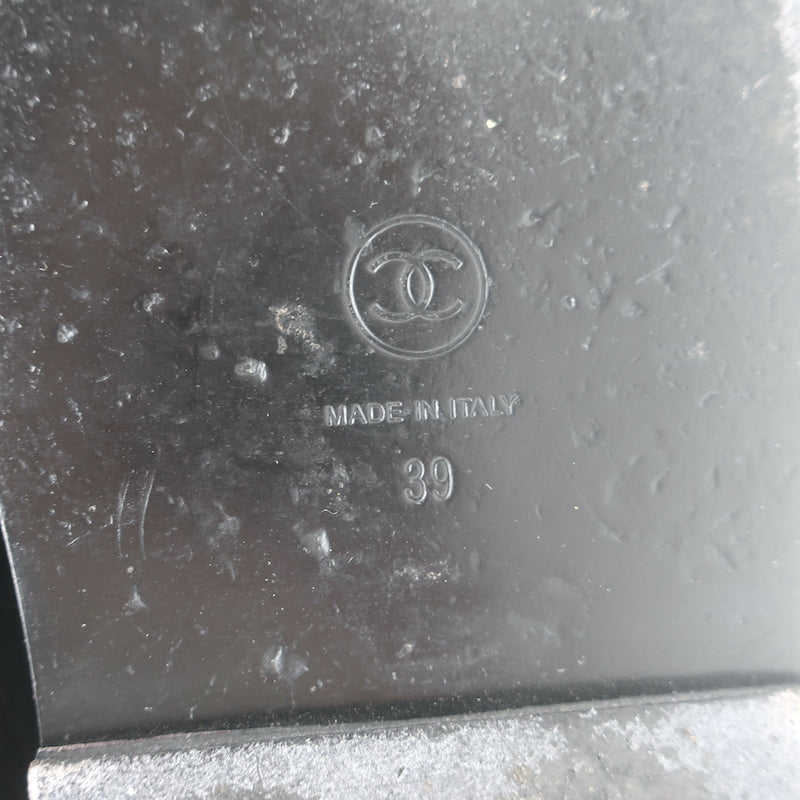 Chanel CC Pumps Black Patent-Trimmed Leather Size 38.5