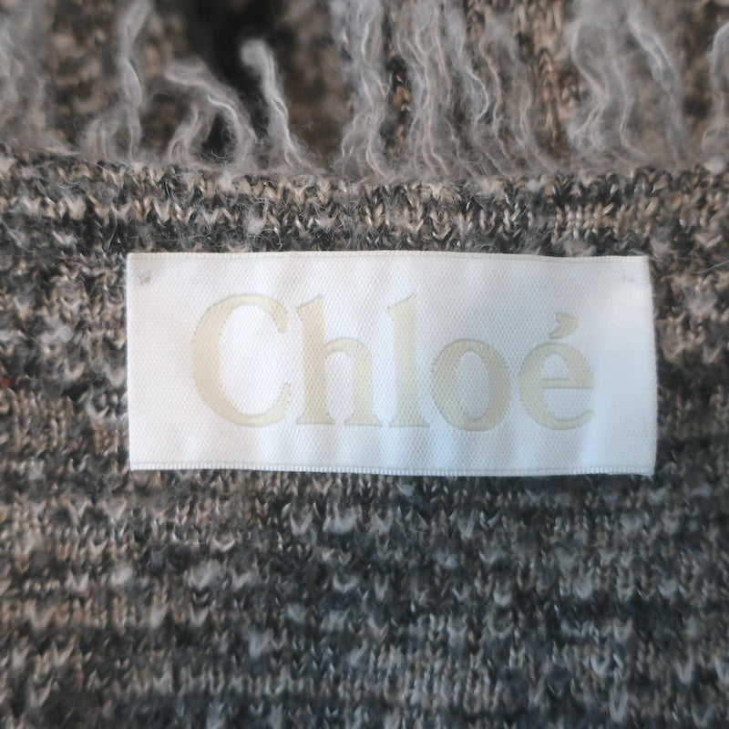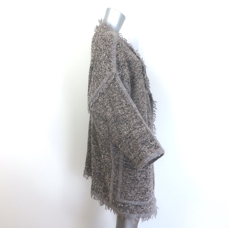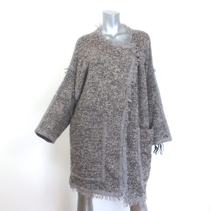 Chloe Fringed Boucle Knit Sweater Coat Gray/Beige Wool-Blend Size Extra Small