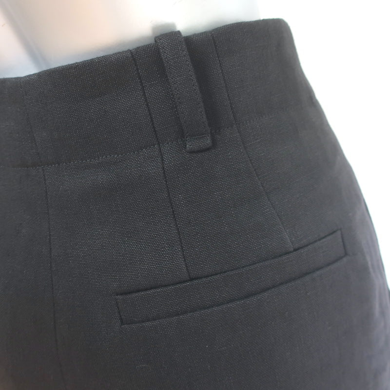 Chloe Linen Wide Leg High Rise Trousers Black Size 34