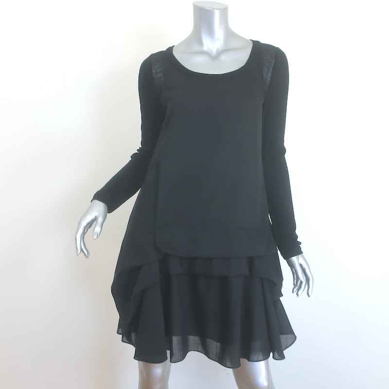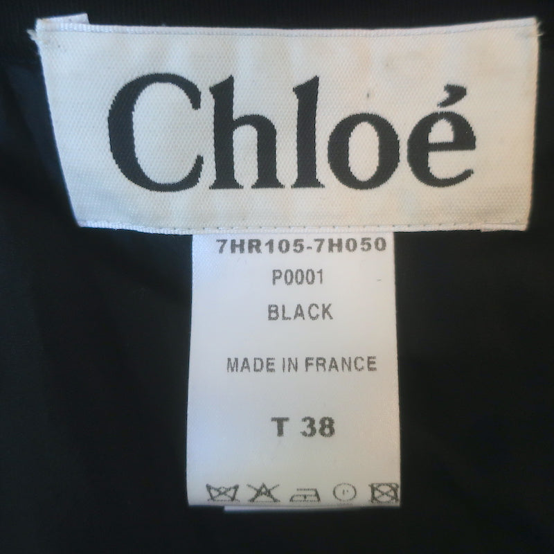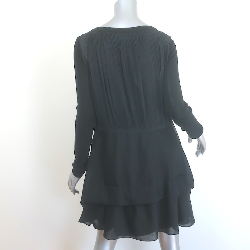 Chloe Pleated-Back Long Sleeve Draped Dress Black Silk-Blend Size 38
