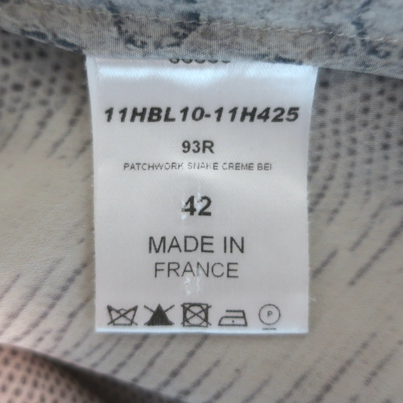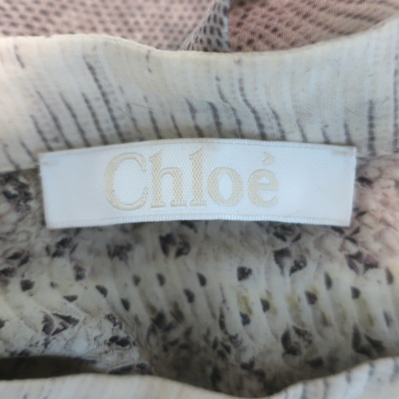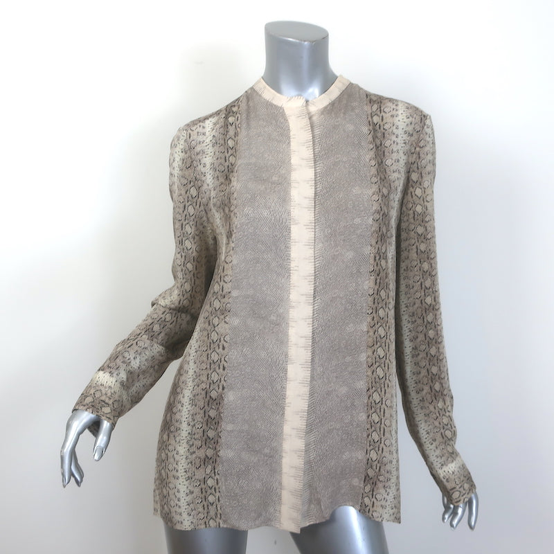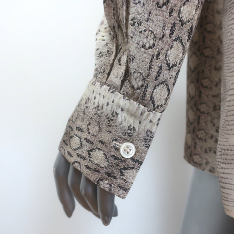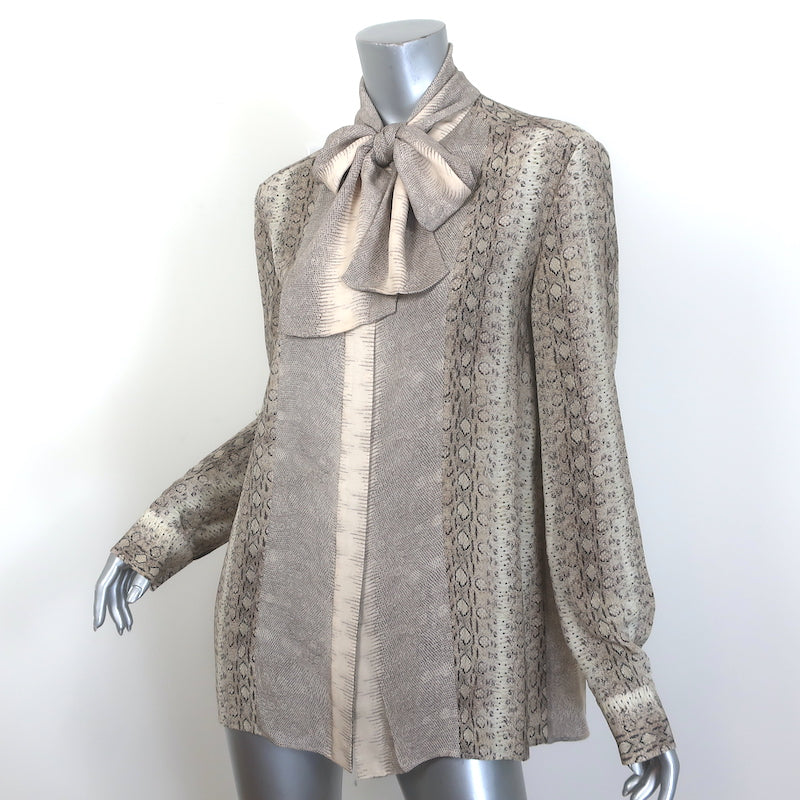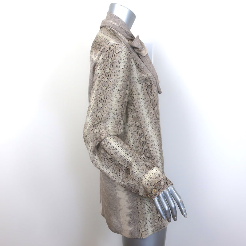 Chloe Scarf-Neck Snakeskin Print Blouse Cream/Gray Silk Size 42 Long Sleeve Top