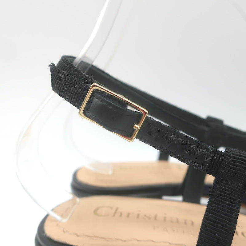Christian Dior Illusion Sandals Black Satin & Gold Leather Size 37.5 NEW