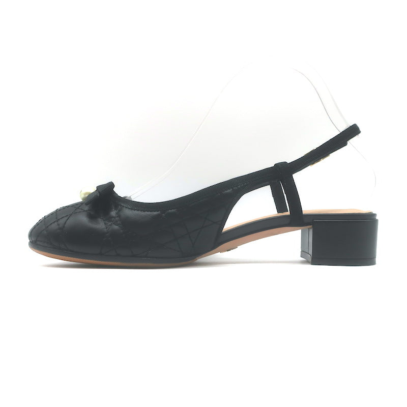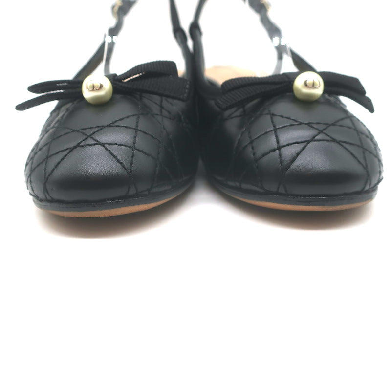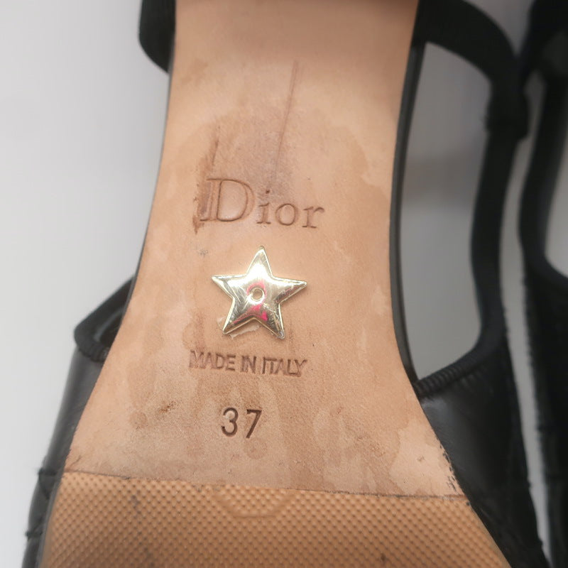 Christian Dior Ballet Slingback Pumps Black Quilted Cannage Leather Size 37