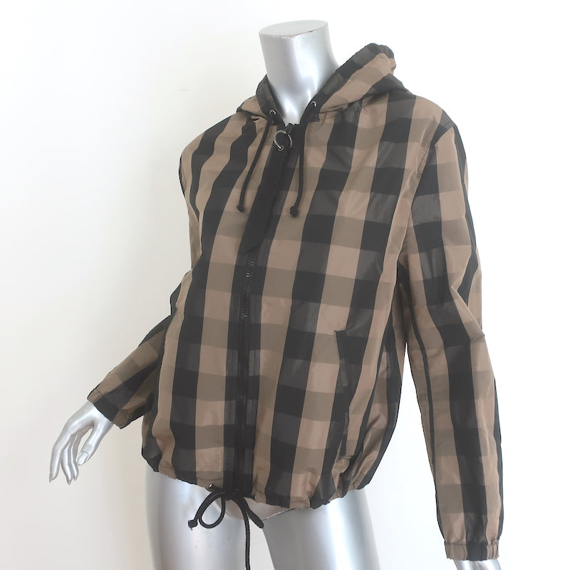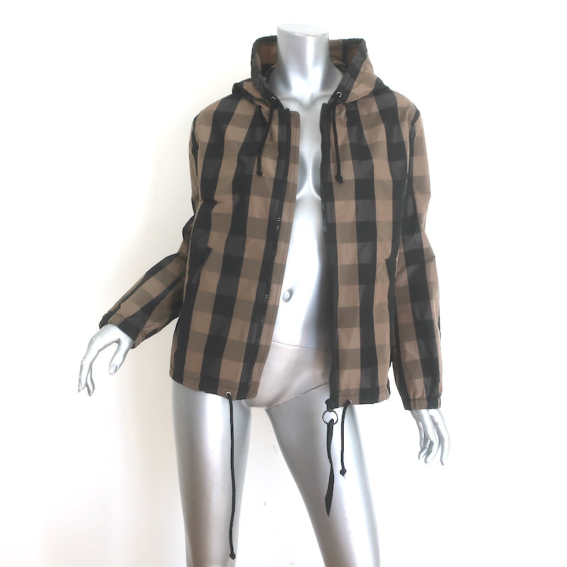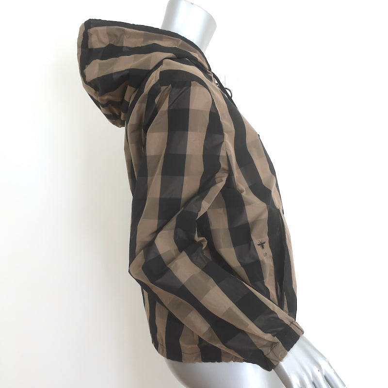 Christian Dior Buffalo Check Hooded Windbreaker Jacket Brown/Black Size US 4