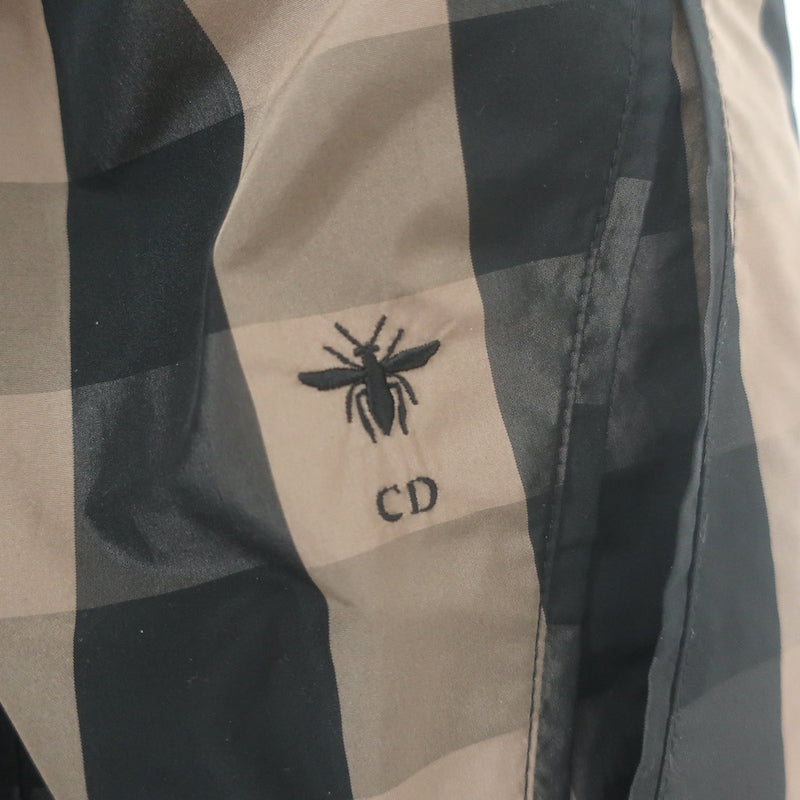 Christian Dior buffalo-check hooded windbreaker brings signature luxury to an everyday silhouette, blending a bold brown-and-black check with a streamlined, hooded design that reads both modern and timeless.