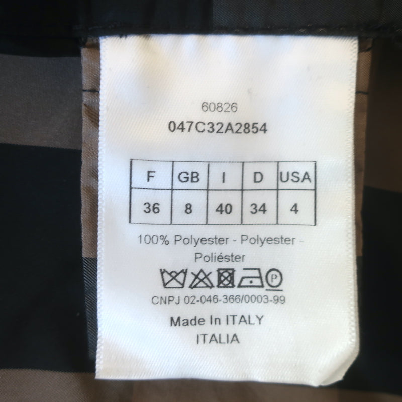 This pre-owned Christian Dior jacket is a size US 4 and presents in gently worn, good condition. The standout buffalo check pattern is unmistakably Dior in its refined execution — a graphic yet elegant print that elevates a practical windbreaker into a collectible outerwear piece. Photographs (11 images available) show the jacket from multiple angles so you can inspect the pattern, cut, and overall condition before purchase.