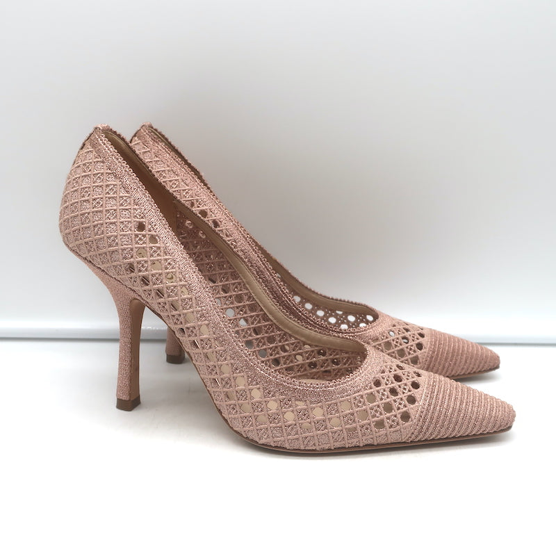 Christian Dior Capture Rose des Vents Lurex Cannage Pumps Rose Gold Size 39.5