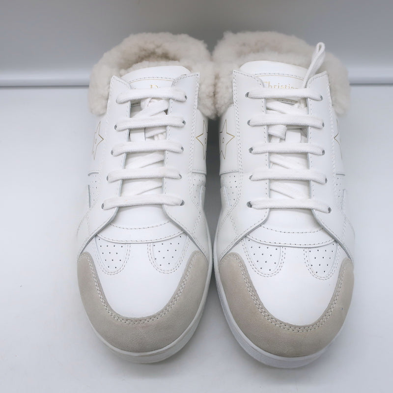 Christian Dior Dior Star Shearling-Lined Sneakers White Leather Size 38