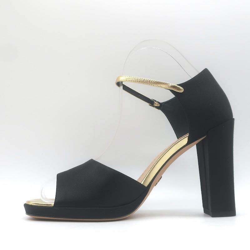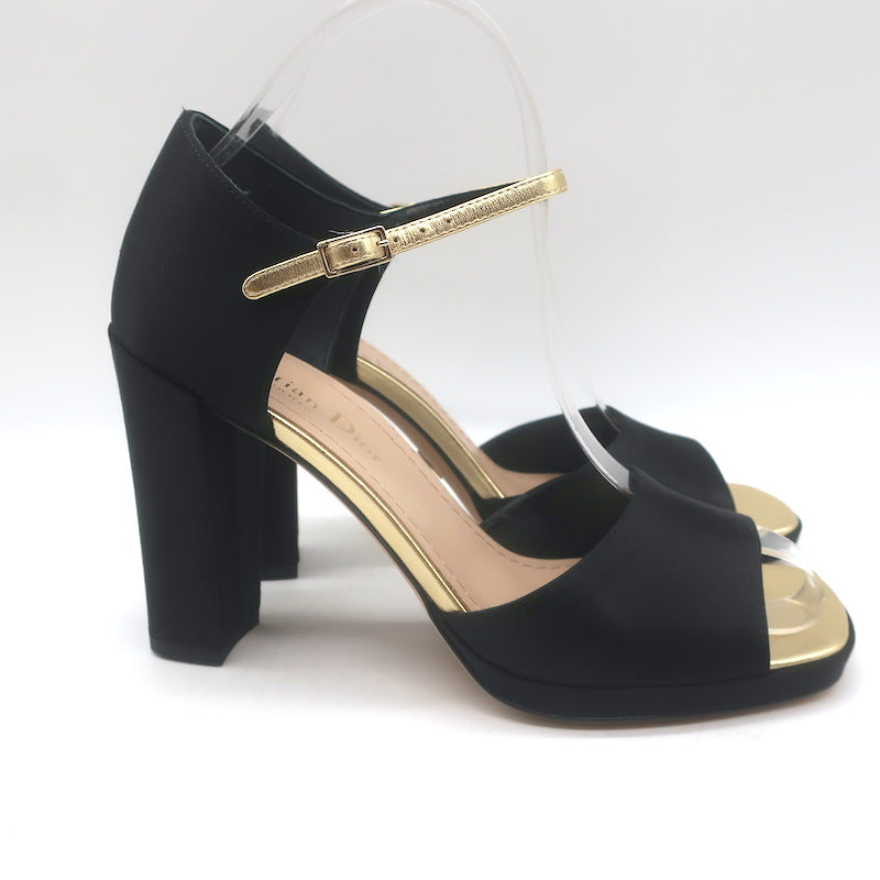 Christian Dior Illusion Sandals Black Satin & Gold Leather Size 37.5 NEW