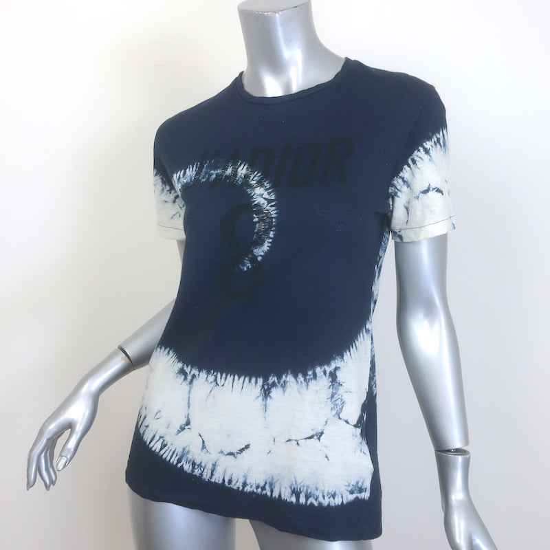 Christian Dior J'Adior 8 Tie Dye T-Shirt Navy Cotton-Linen Size Small