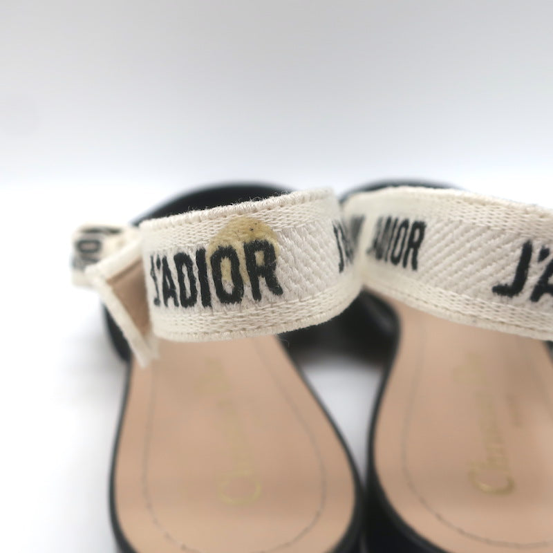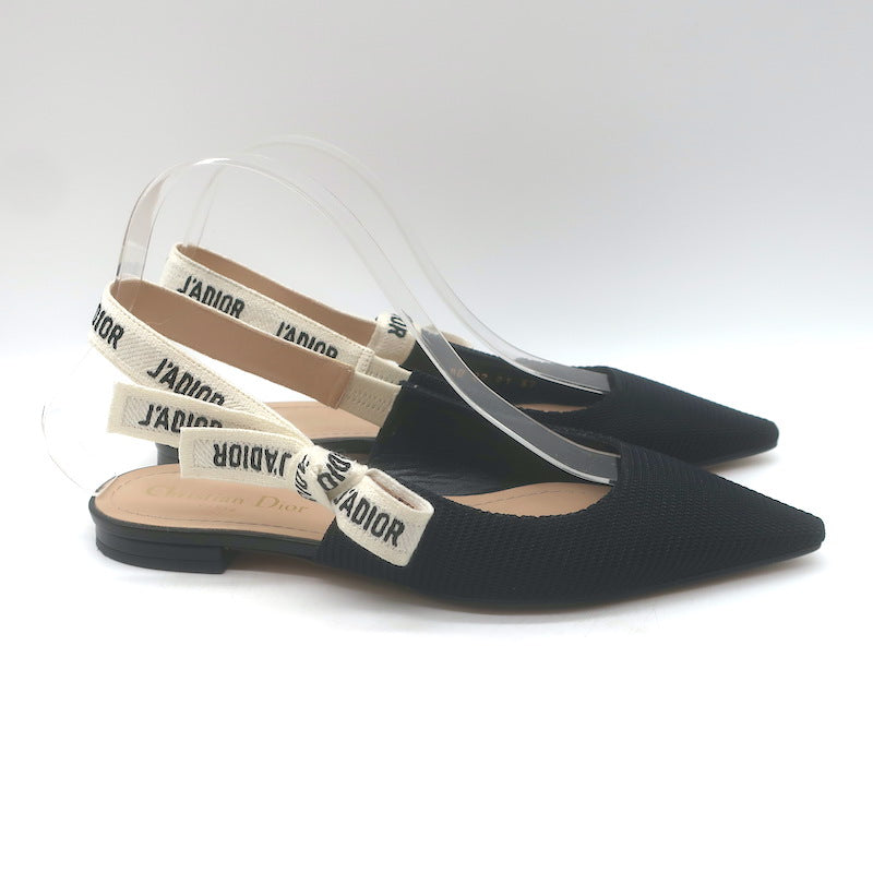 Christian Dior J'Adior Slingback Flats Black Technical Fabric Size 37