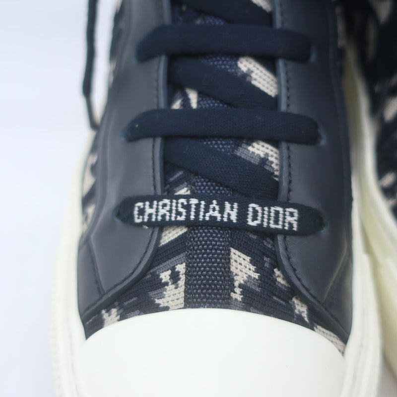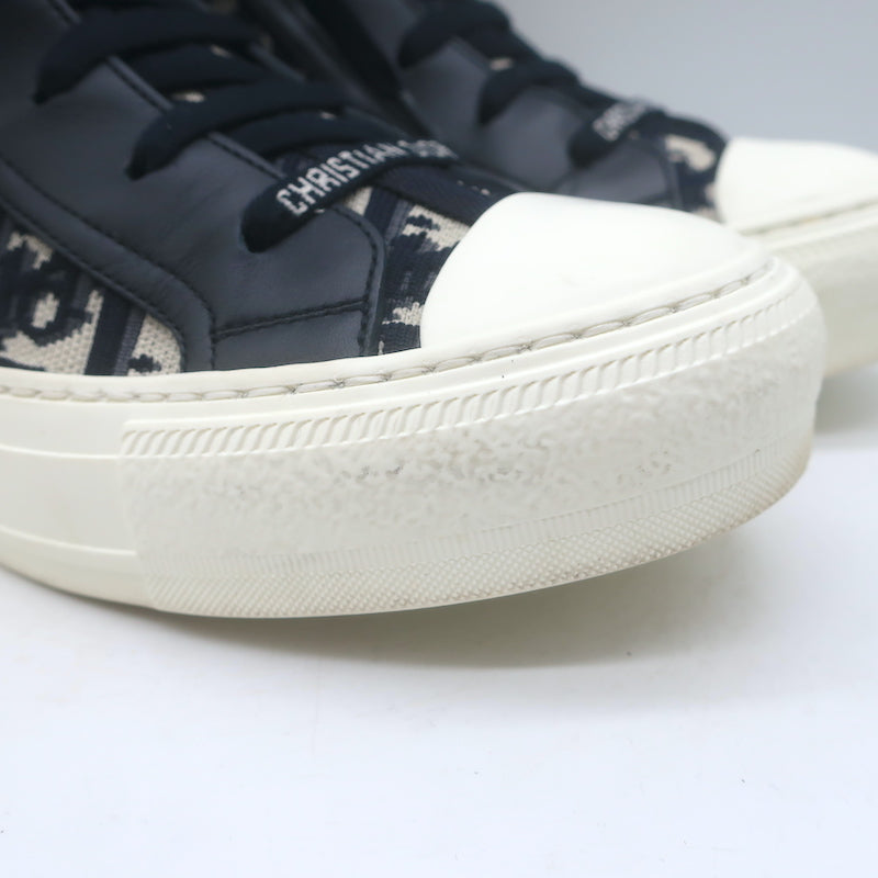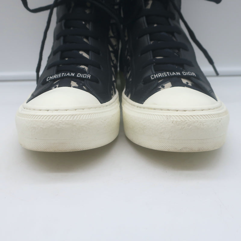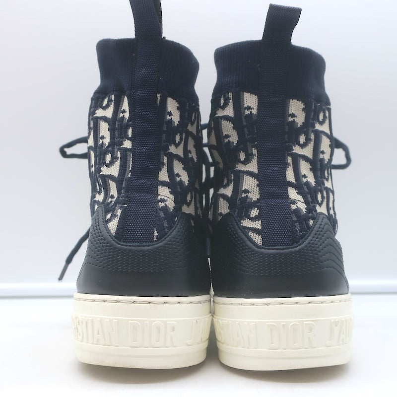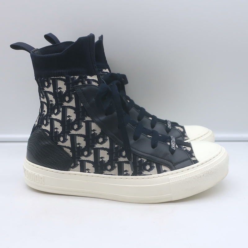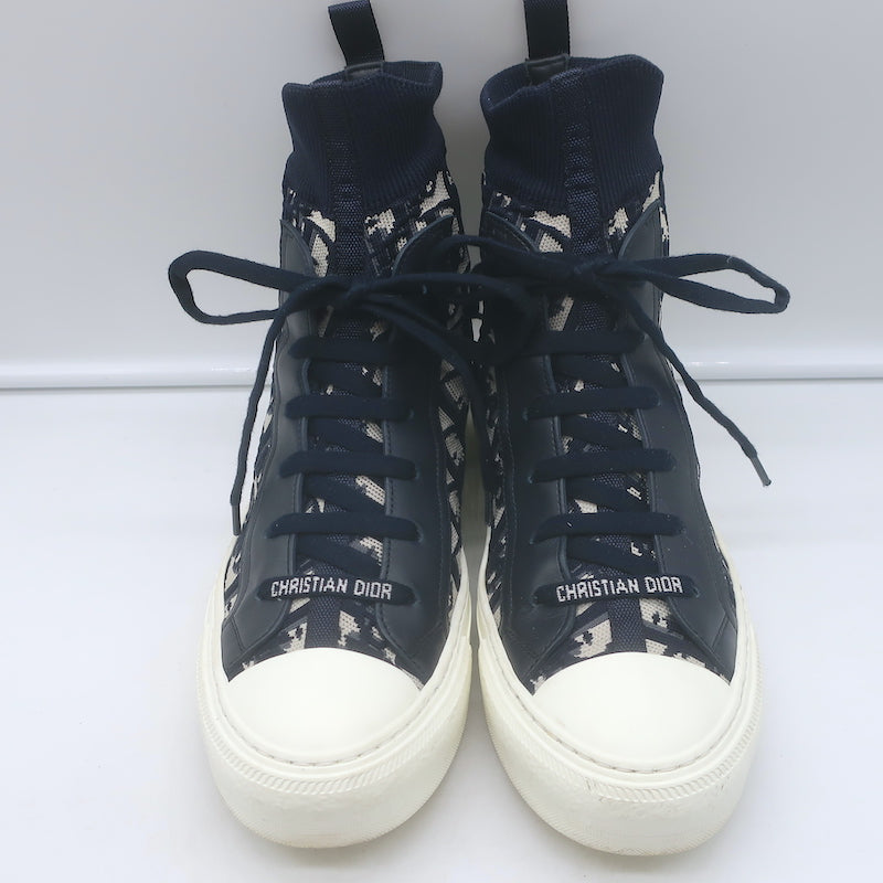 Christian Dior Walk'n'Dior High Top Sneakers Navy Oblique Stretch Knit Size 38.5
