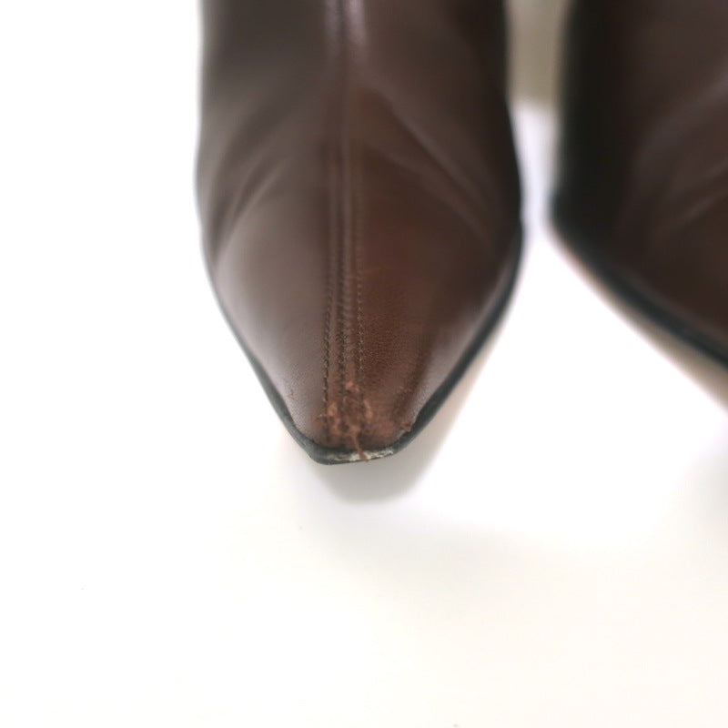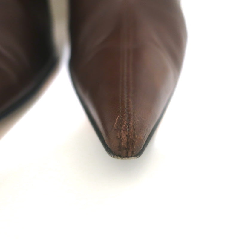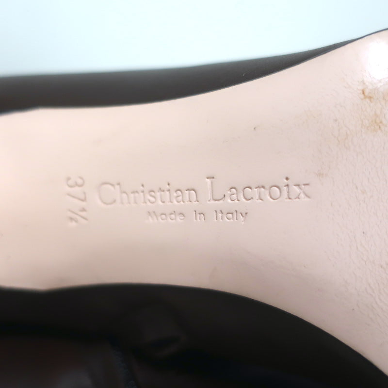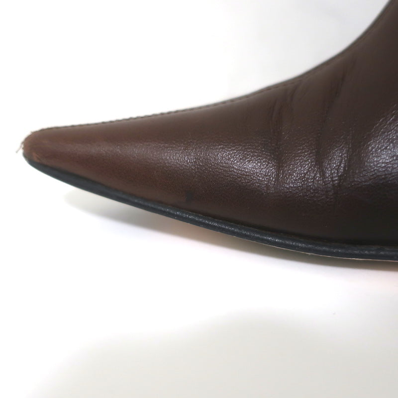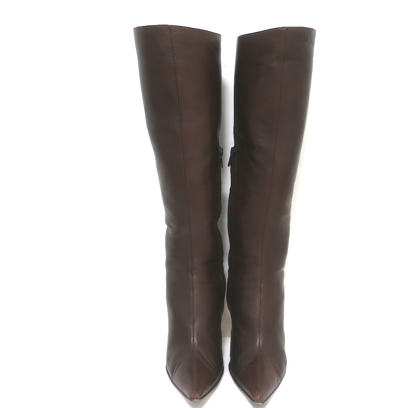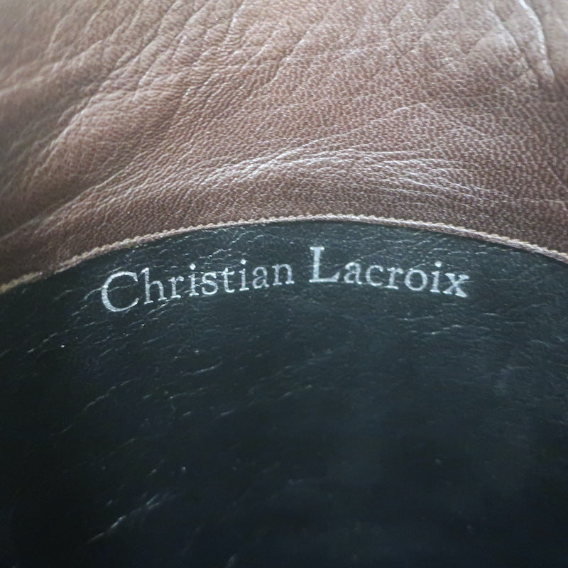 Christian Lacroix Knee High Pointed Toe Boots Dark Brown Leather Size 37.5
