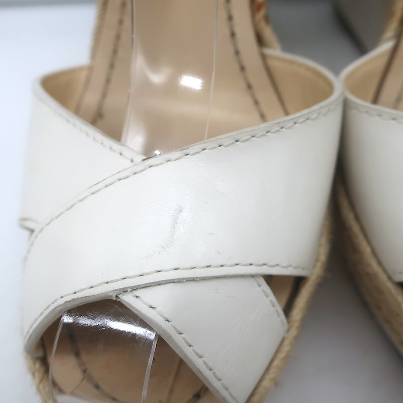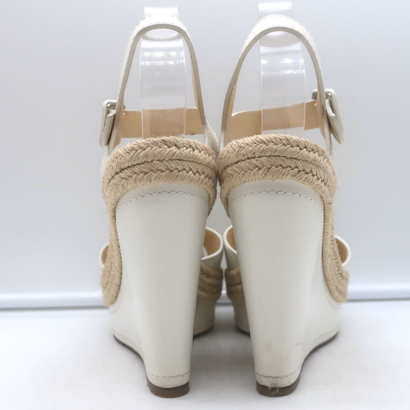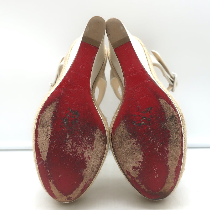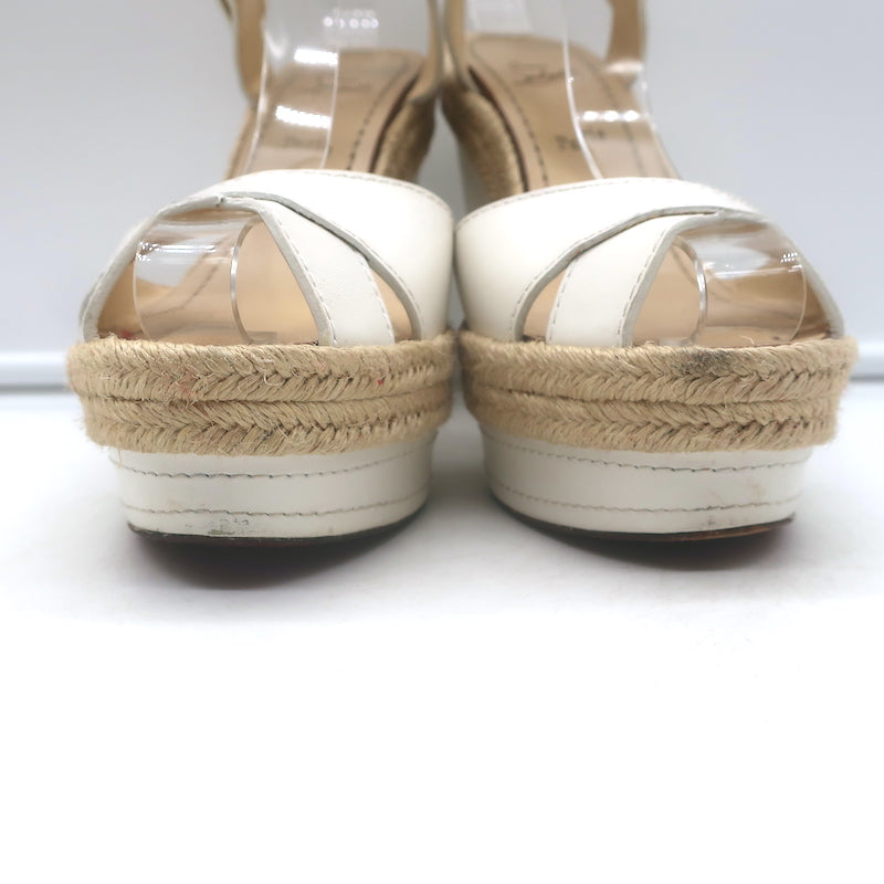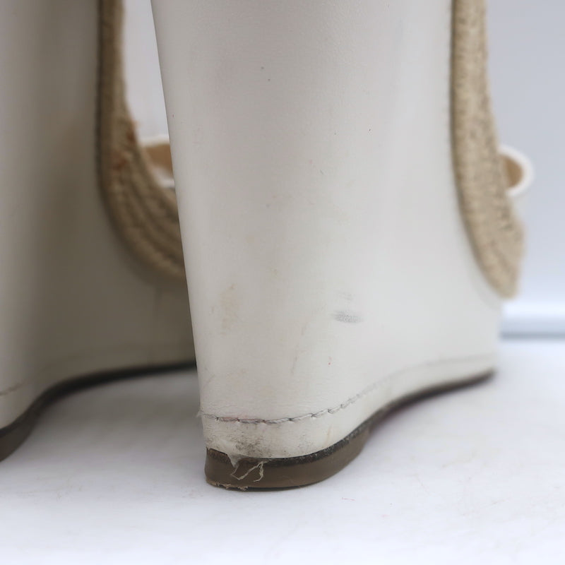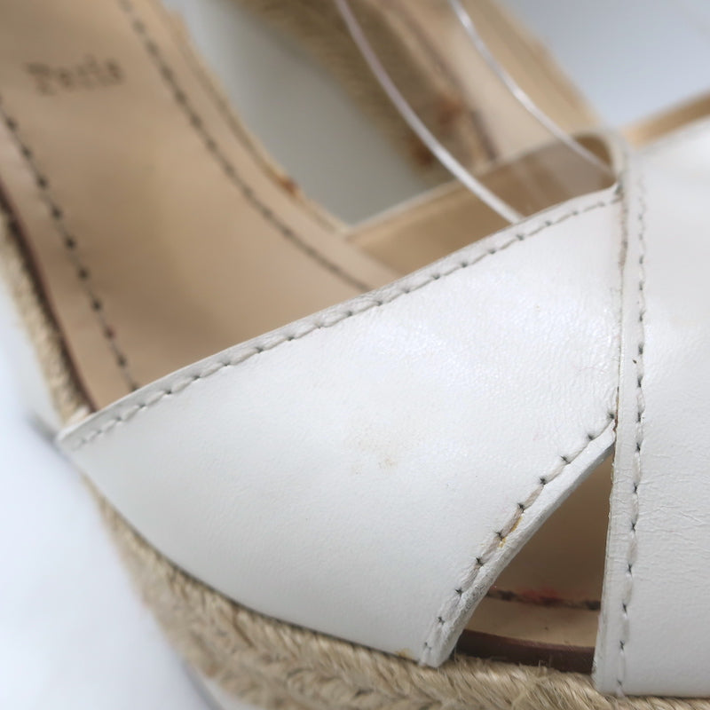 Christian Louboutin Almeria 120 Espadrille Wedge Sandals White Leather Size 37