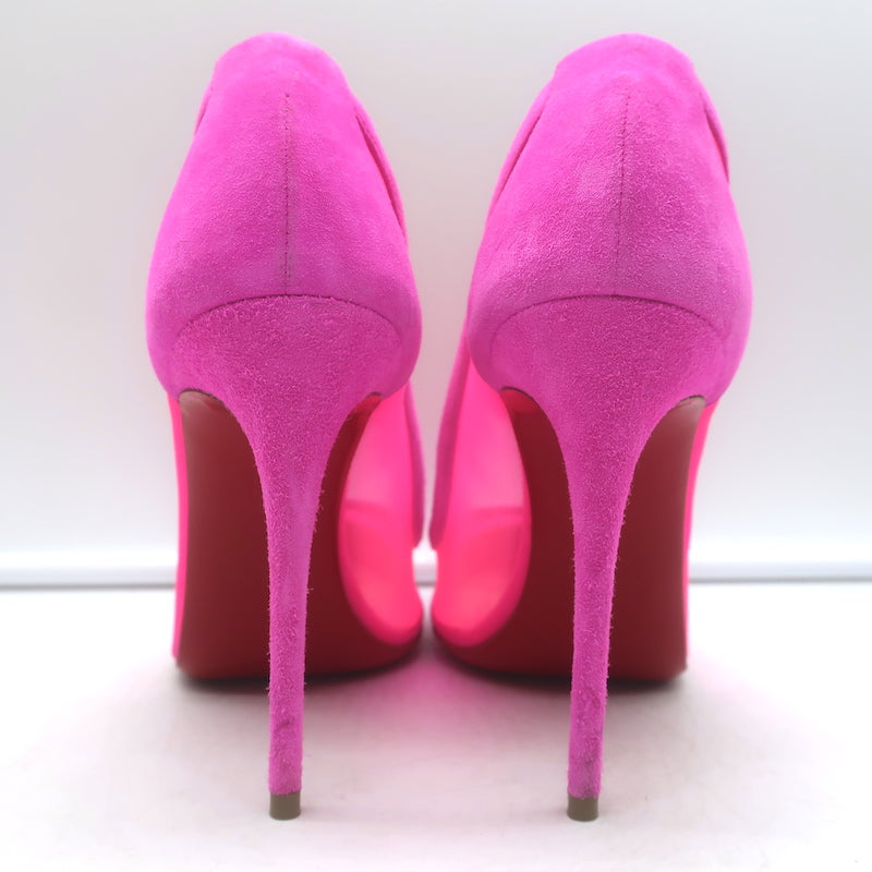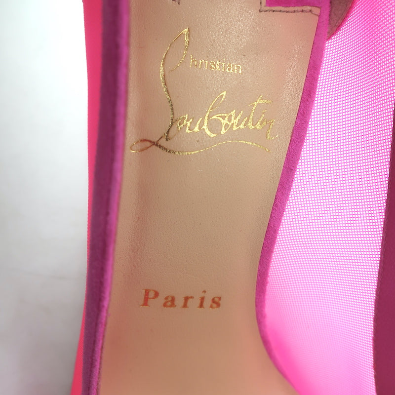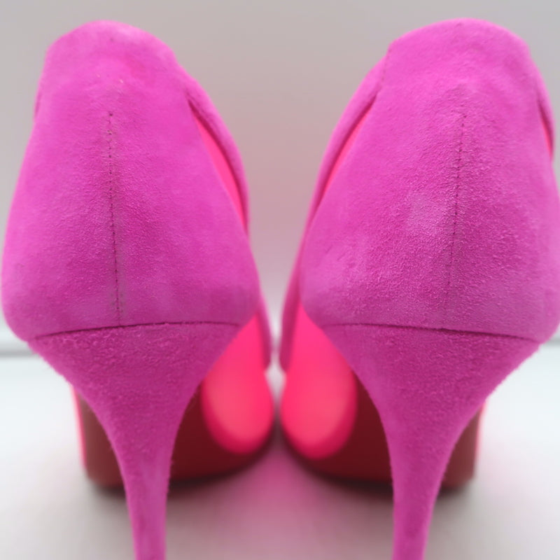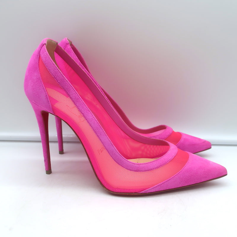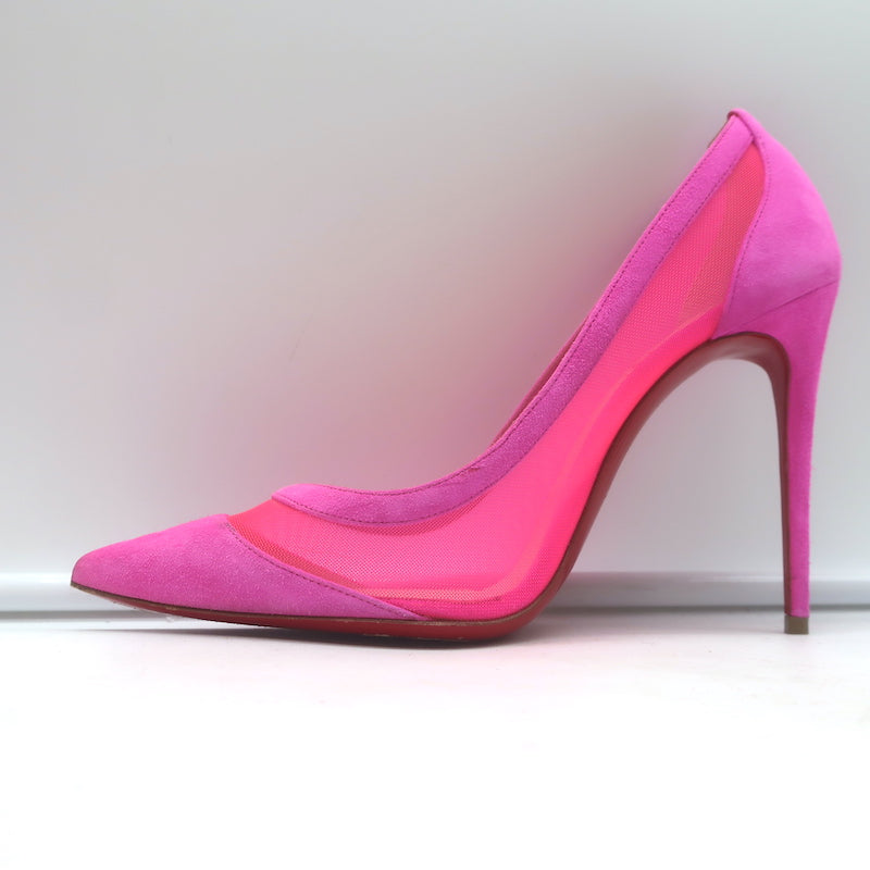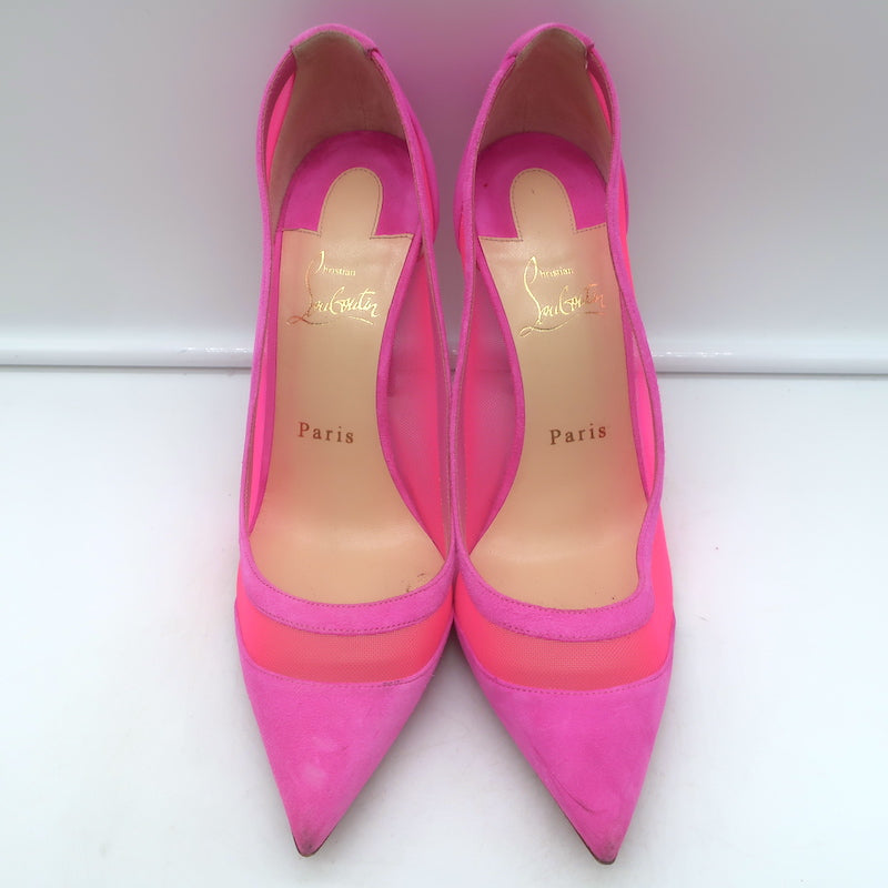 Christian Louboutin Galativi Pointed Toe Pumps Hot Pink Suede & Mesh Size 37.5