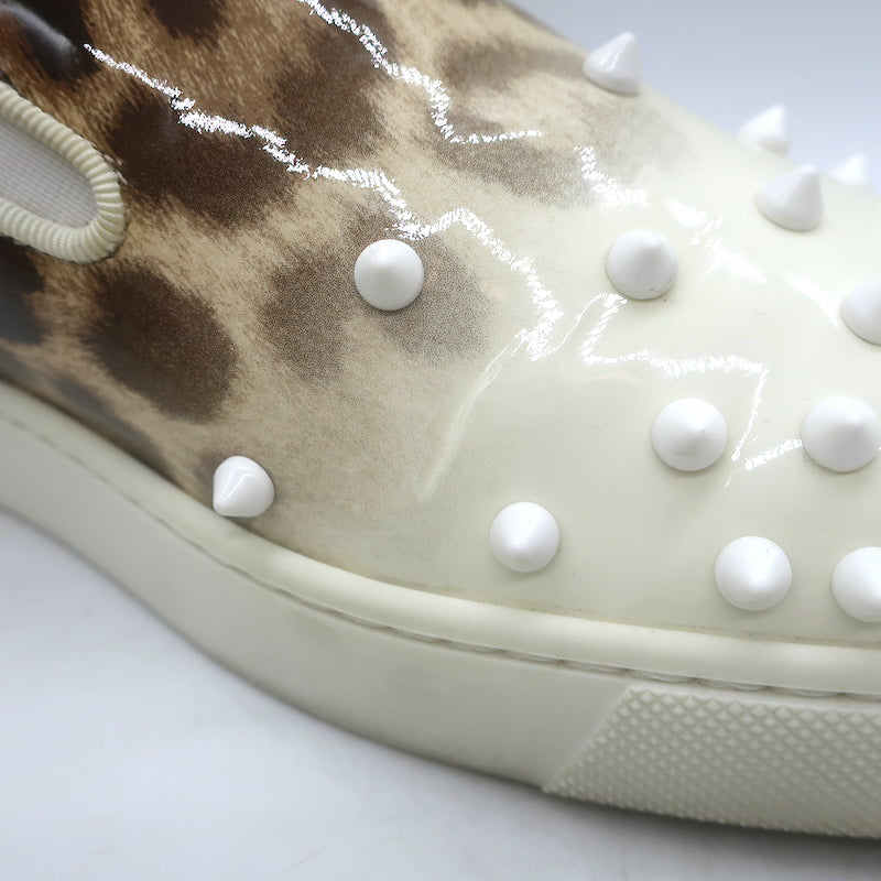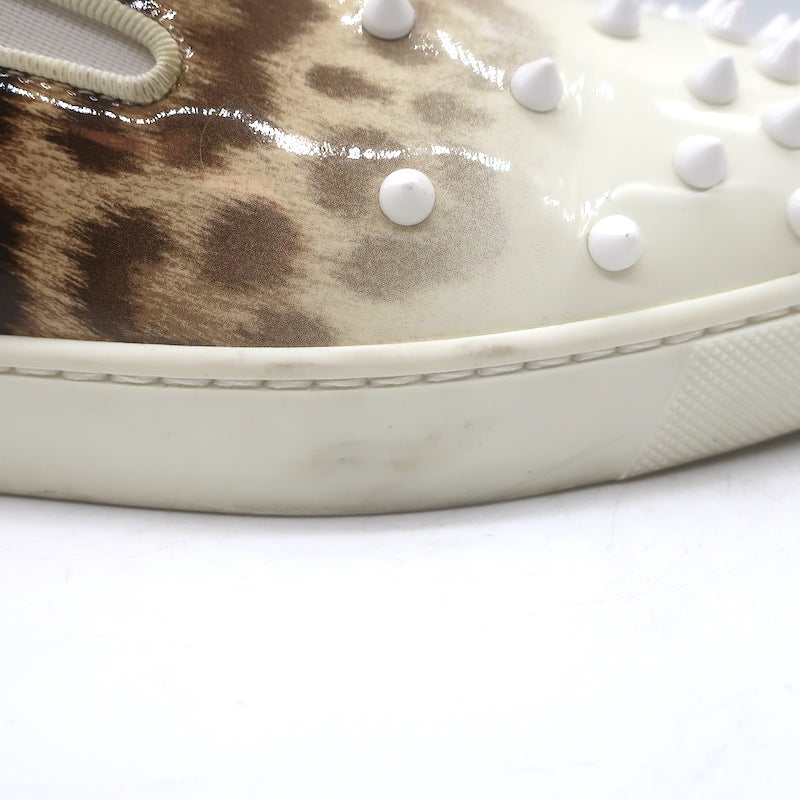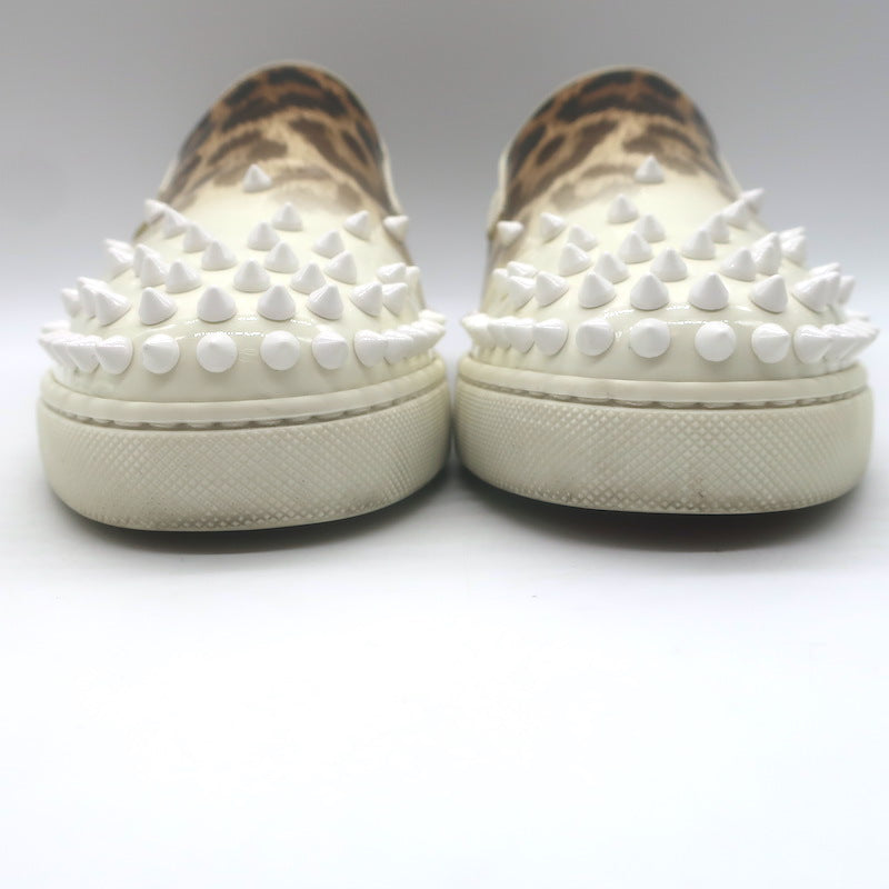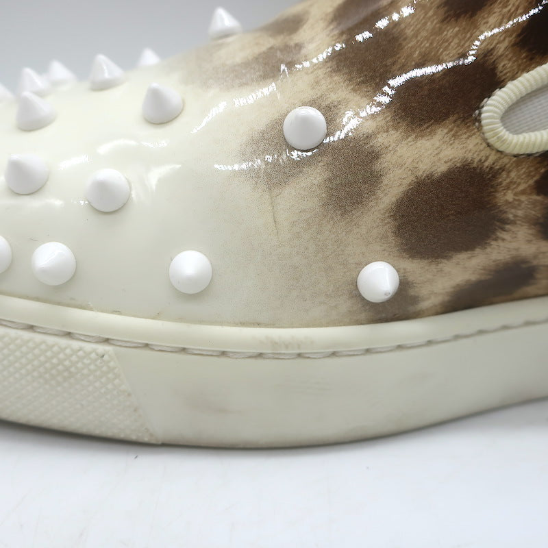 Christian Louboutin Manitoboat Spike Sneakers Leopard/White Ombre Patent Size 38