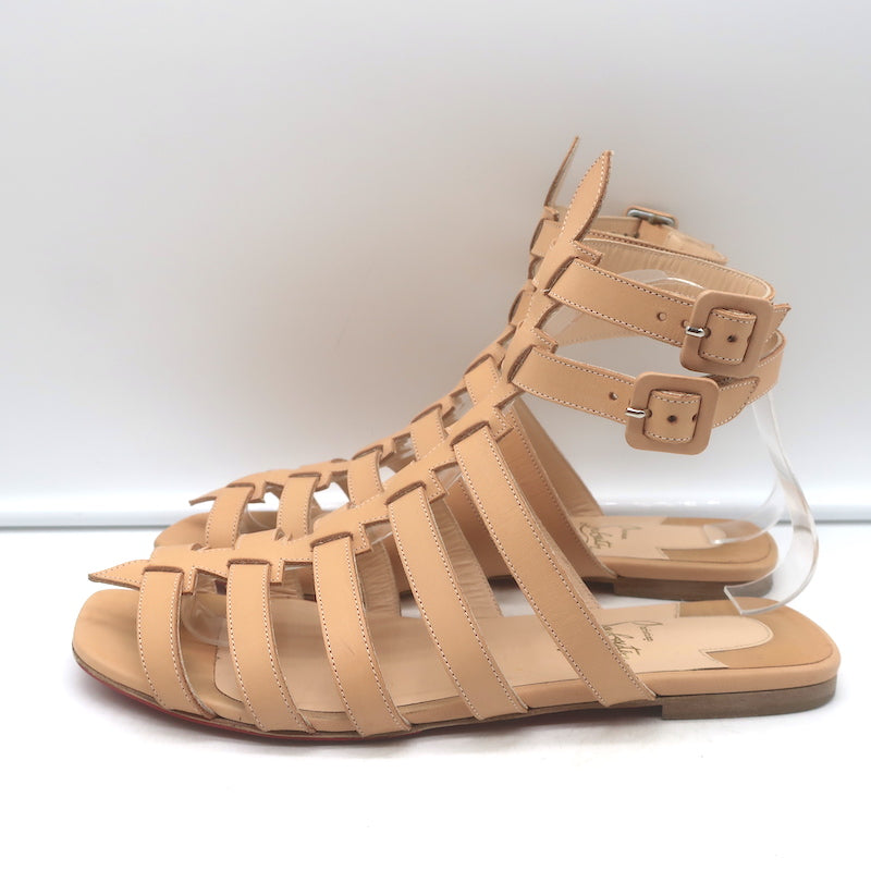 Christian Louboutin Neronna Flat Gladiator Sandals Beige Leather Size 40