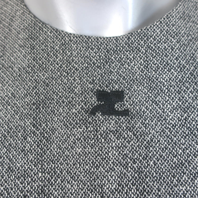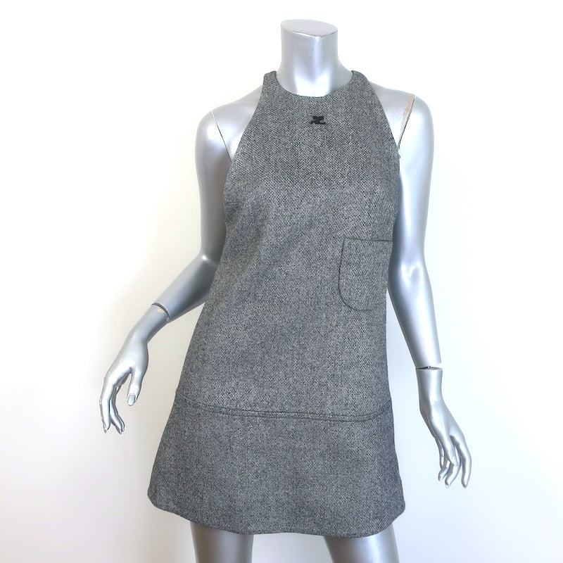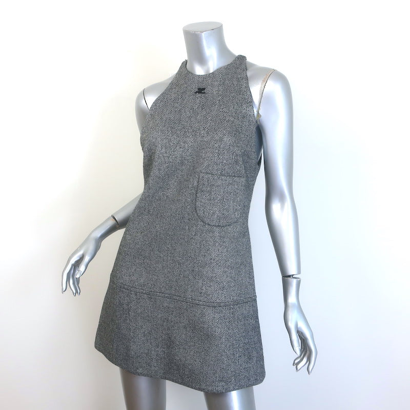 Courreges Tweed Logo-Embroidered Sleeveless Mini Dress Gray Wool-Blend Size 38