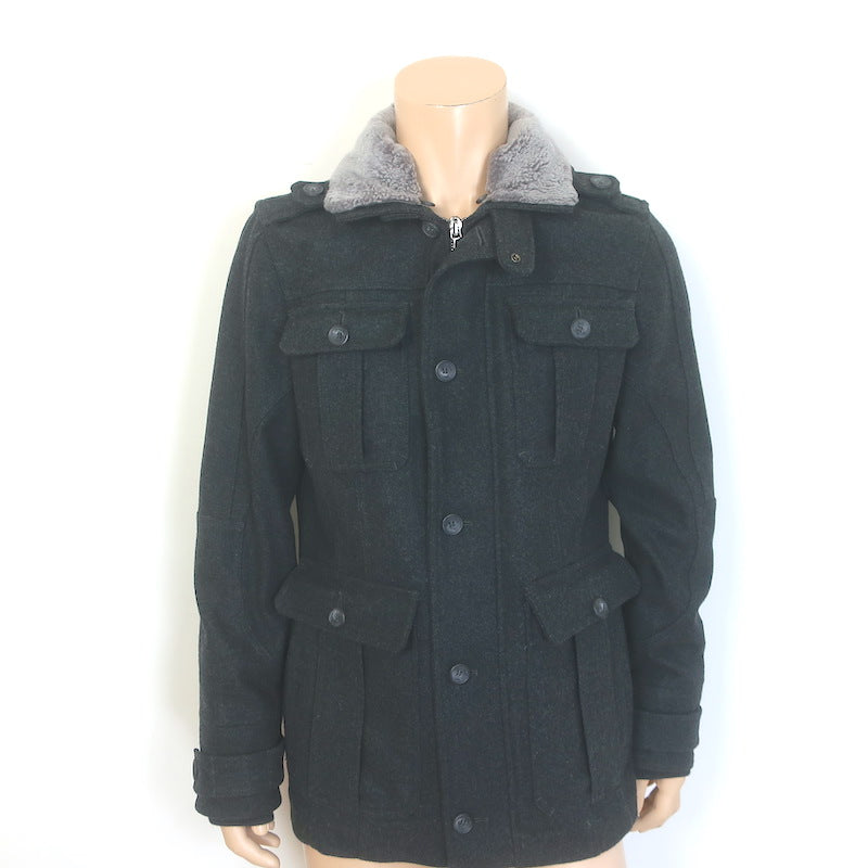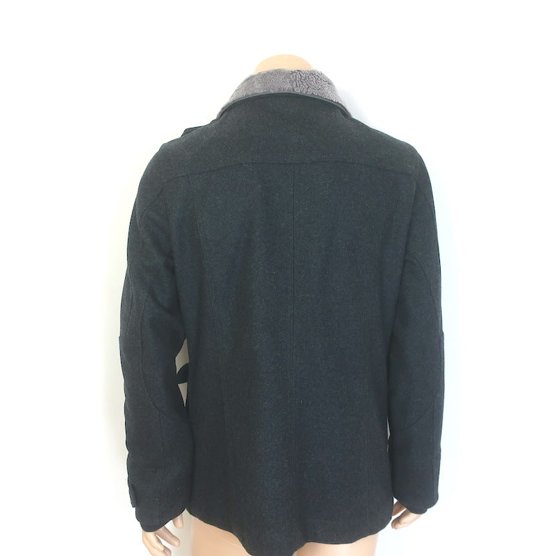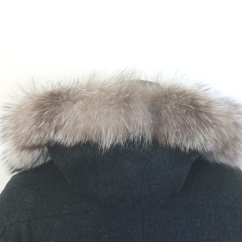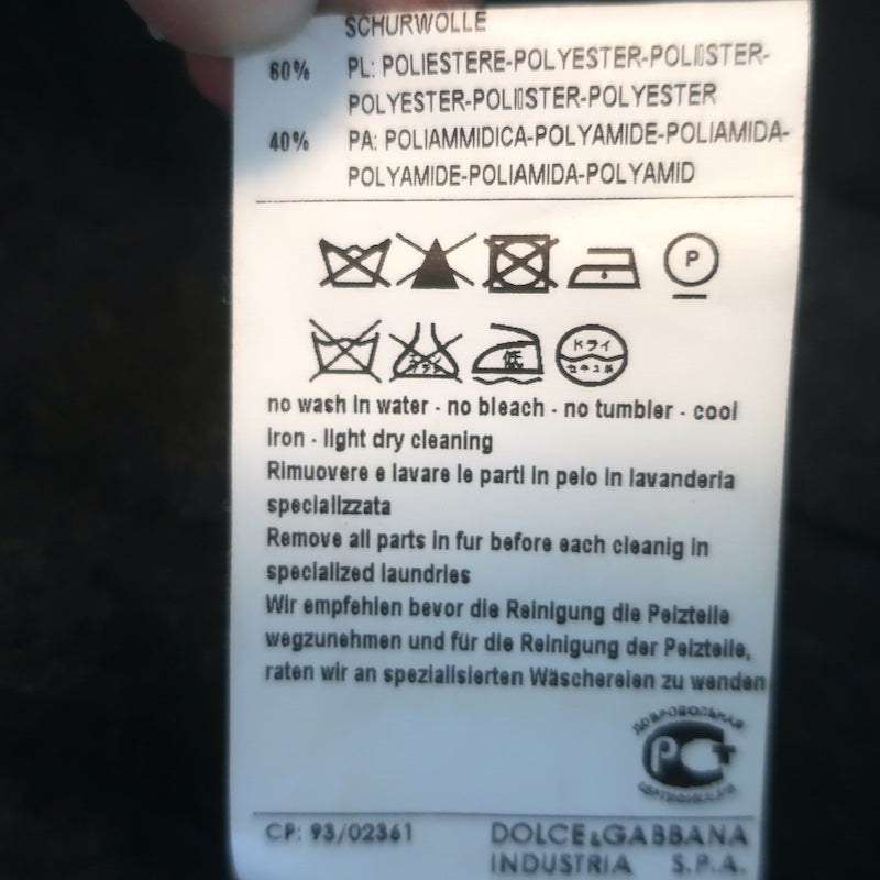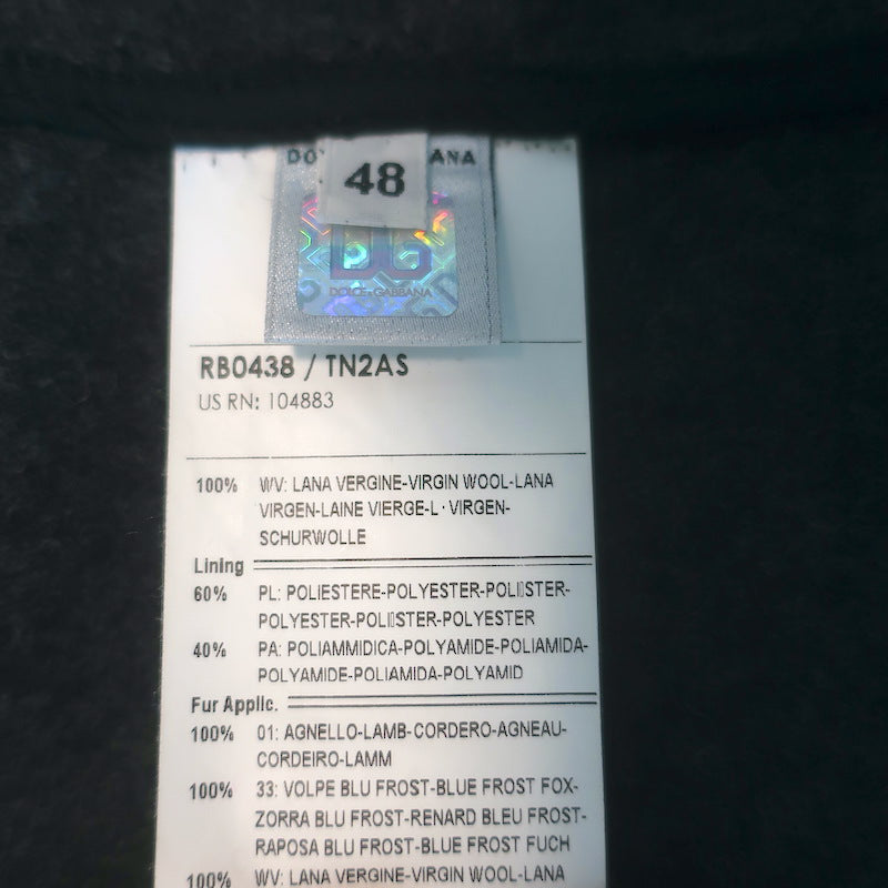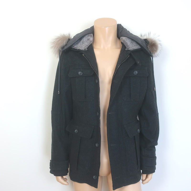D&G Dolce & Gabbana Shearling & Fur Collar Wool Parka Jacket Charcoal Size 48