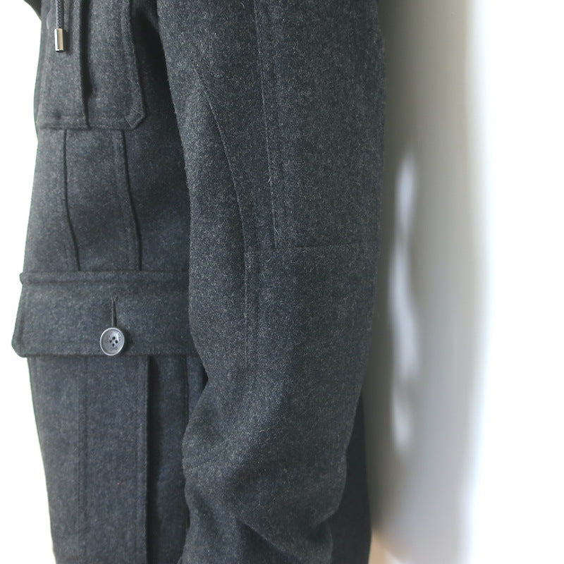 D&G Dolce & Gabbana Hooded Duffle Coat Charcoal Virgin Wool Felt Size 50
