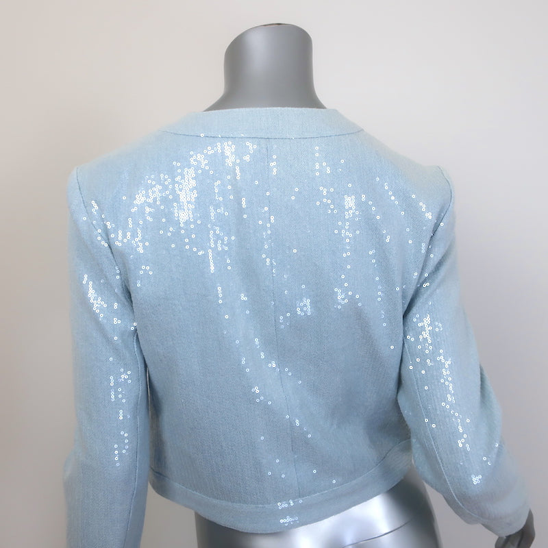 Derek Lam 10 Crosby Penny Cropped Sequin Jacket Light Blue Size 0