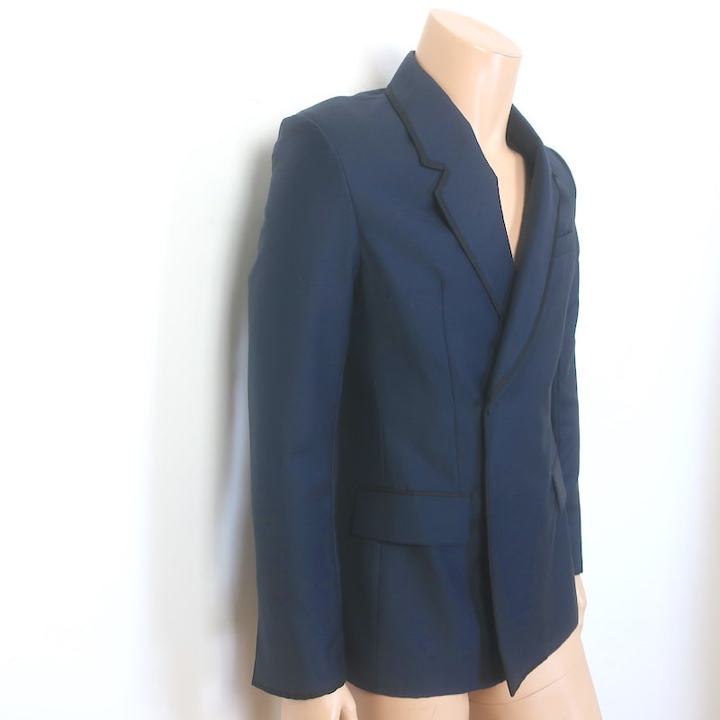 Dior Homme Double Breasted Satin-Trimmed Blazer Jacket Navy Size 44