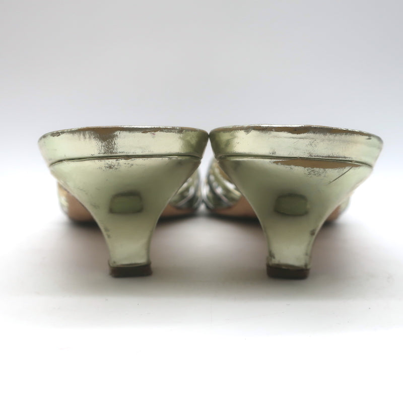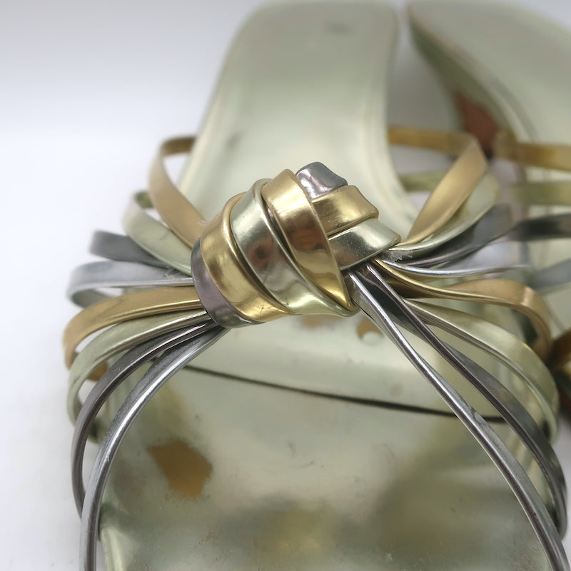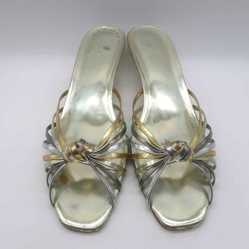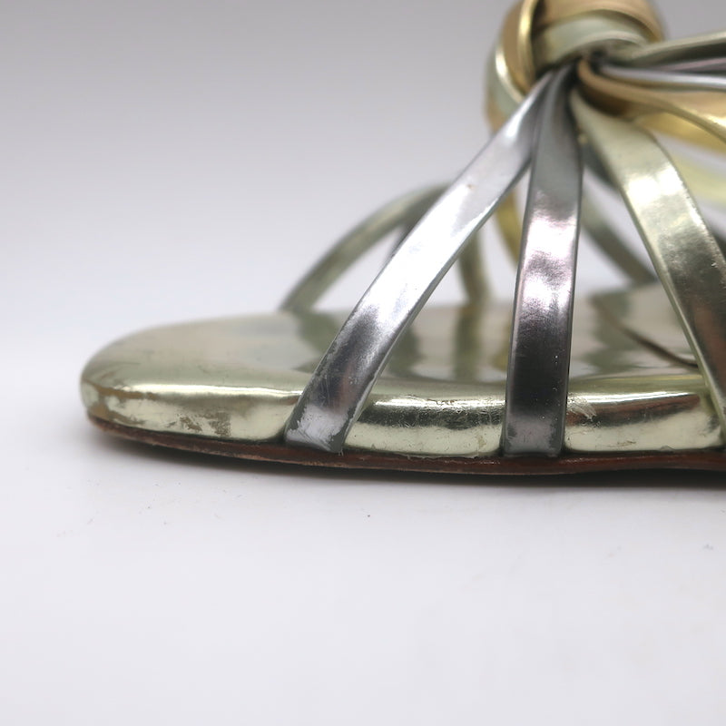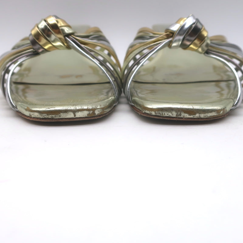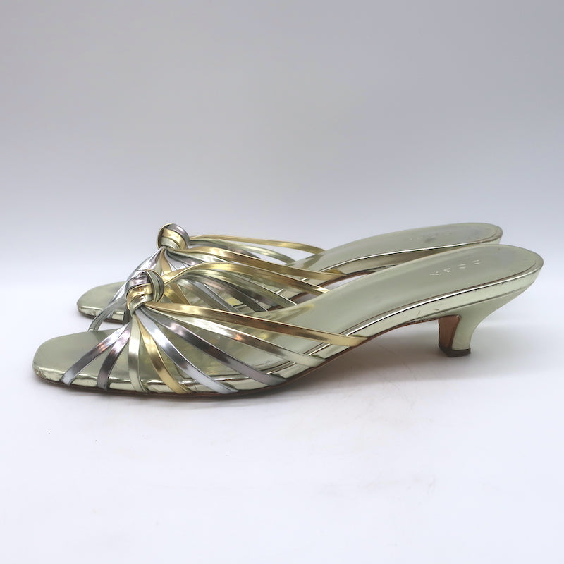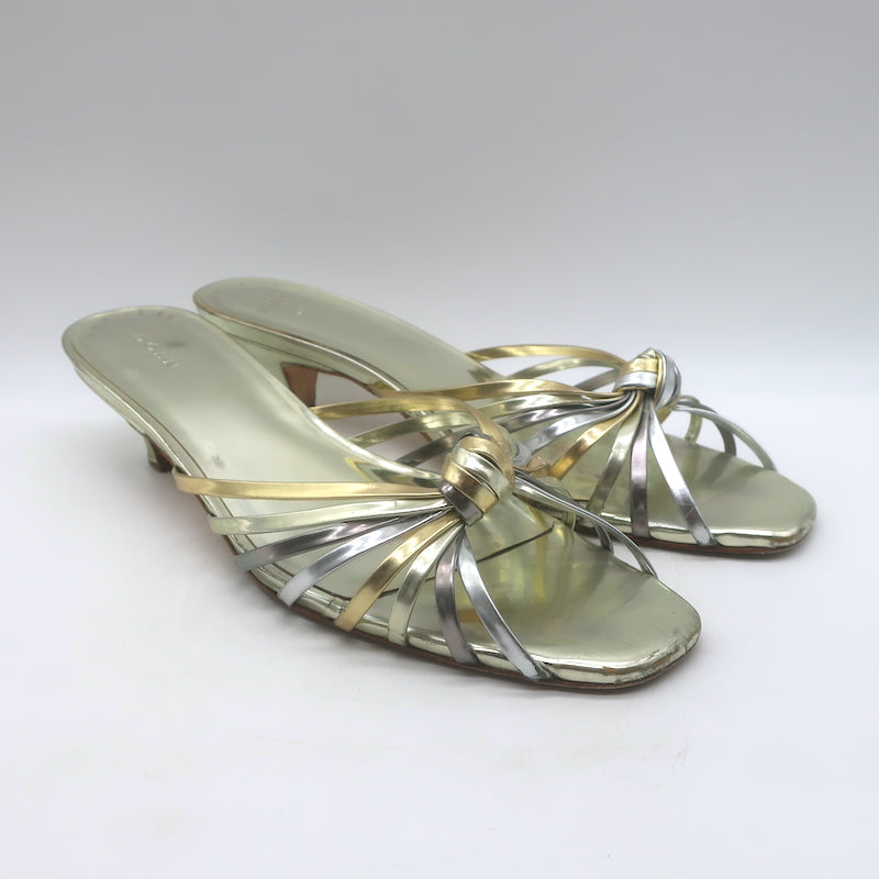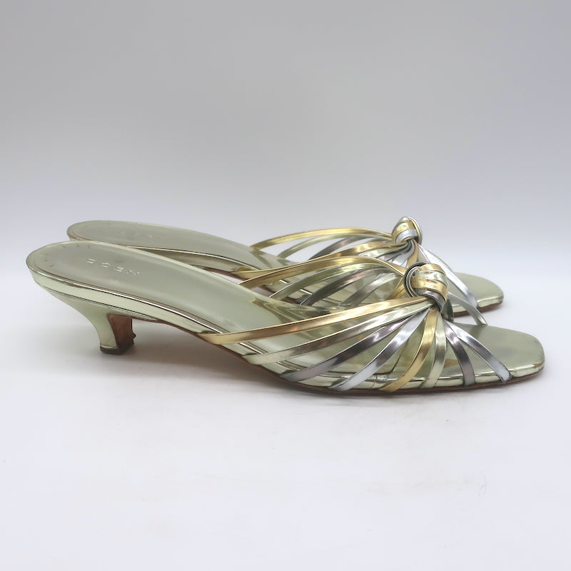 Doen Gio Mixed Metallic Leather Kitten Heel Sandals Gold/Silver Size 40