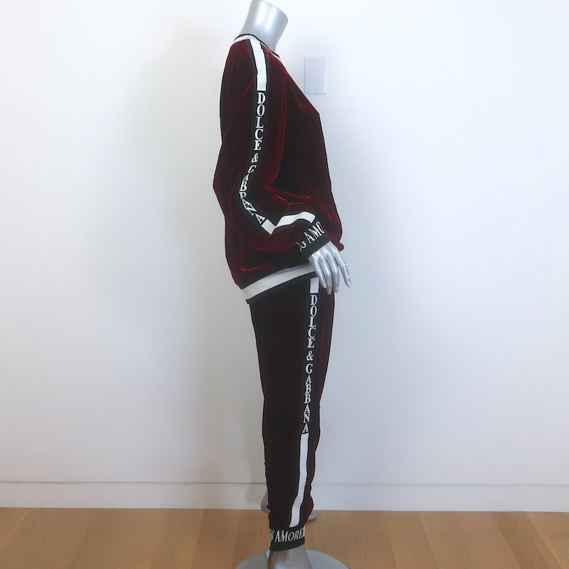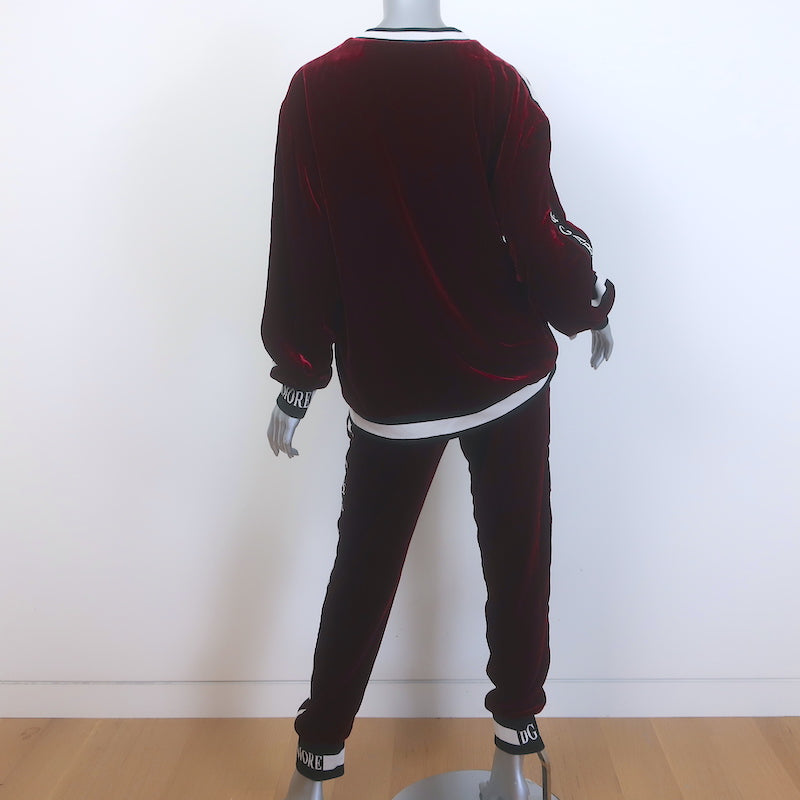 Dolce & Gabbana Amore Velvet Tracksuit Bordeaux Size 42 Sweatshirt & Pants Set