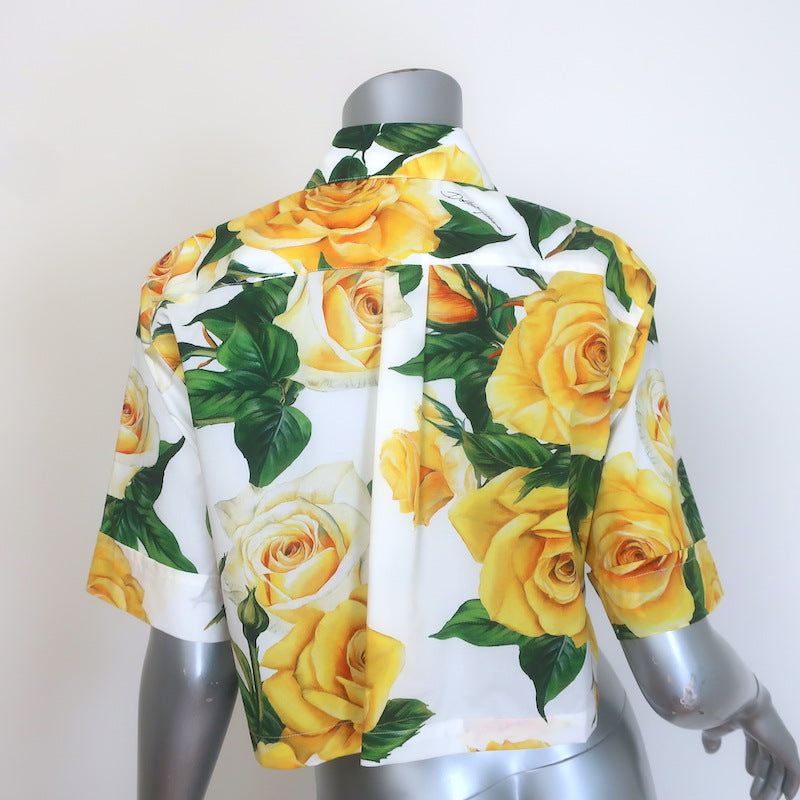 Dolce & Gabbana Rose Print Cropped Shirt White/Yellow Cotton Size 40
