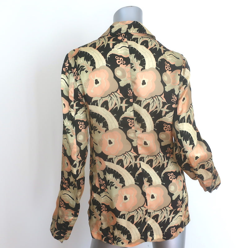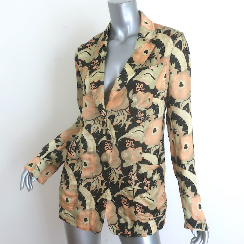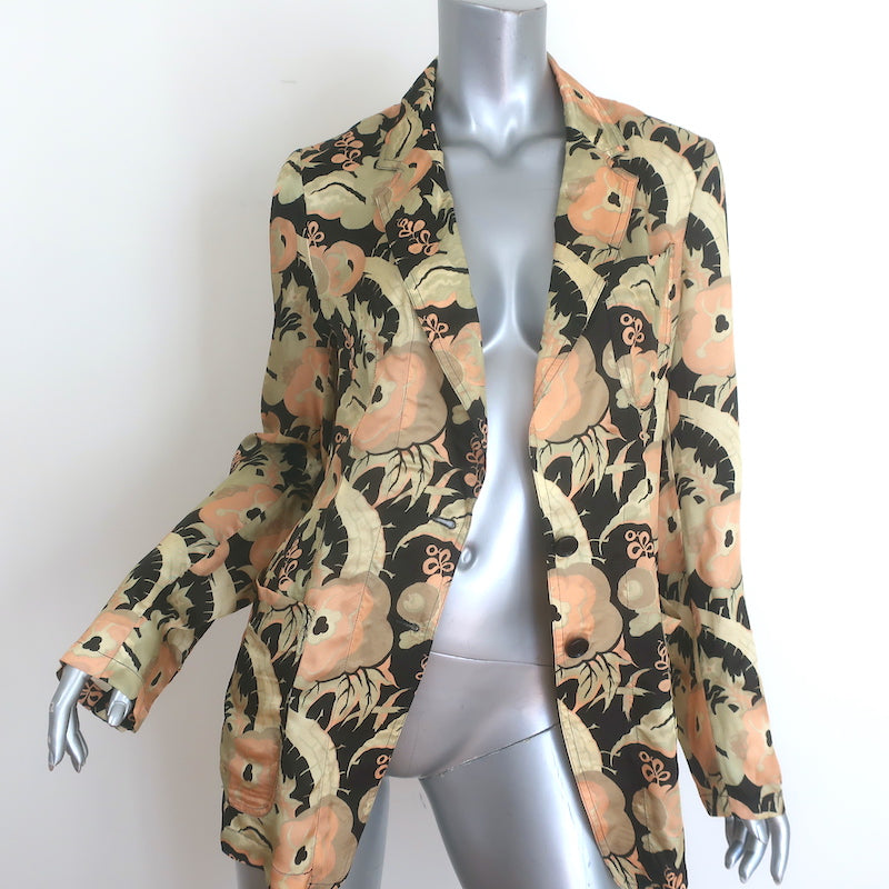 Dries Van Noten Floral Print Satin Blazer Gold/Black Size 36 One-Button Jacket Measurements