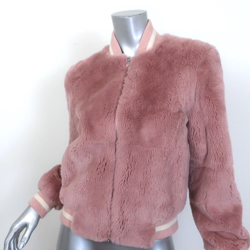 Elizabeth & James Ellington Rabbit Fur Bomber Jacket Pink Size Extra Small