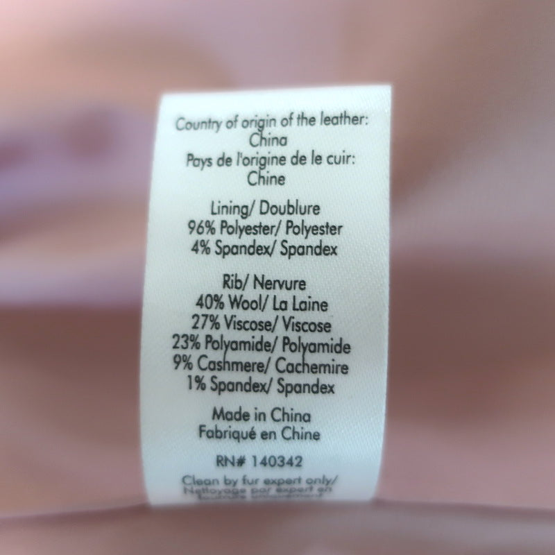 Gently worn. Great condition. No flaws. Retails for $1,080! 72% viscose, 28% poly; 100% lambskin -**-