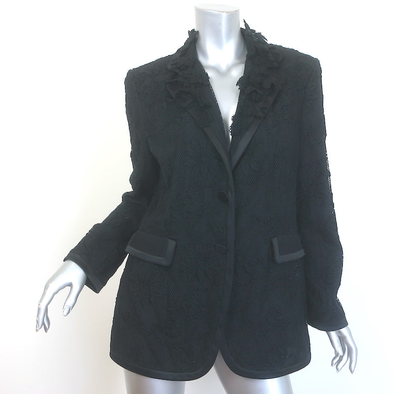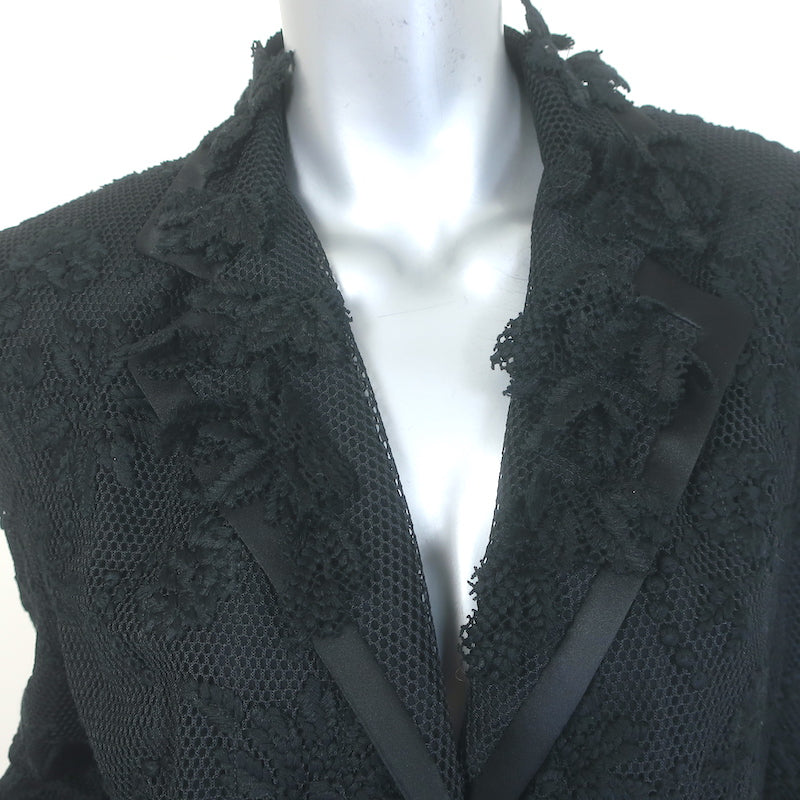 Ermanno Scervino Floral-Applique Embroidered Mesh Blazer Black Size 44