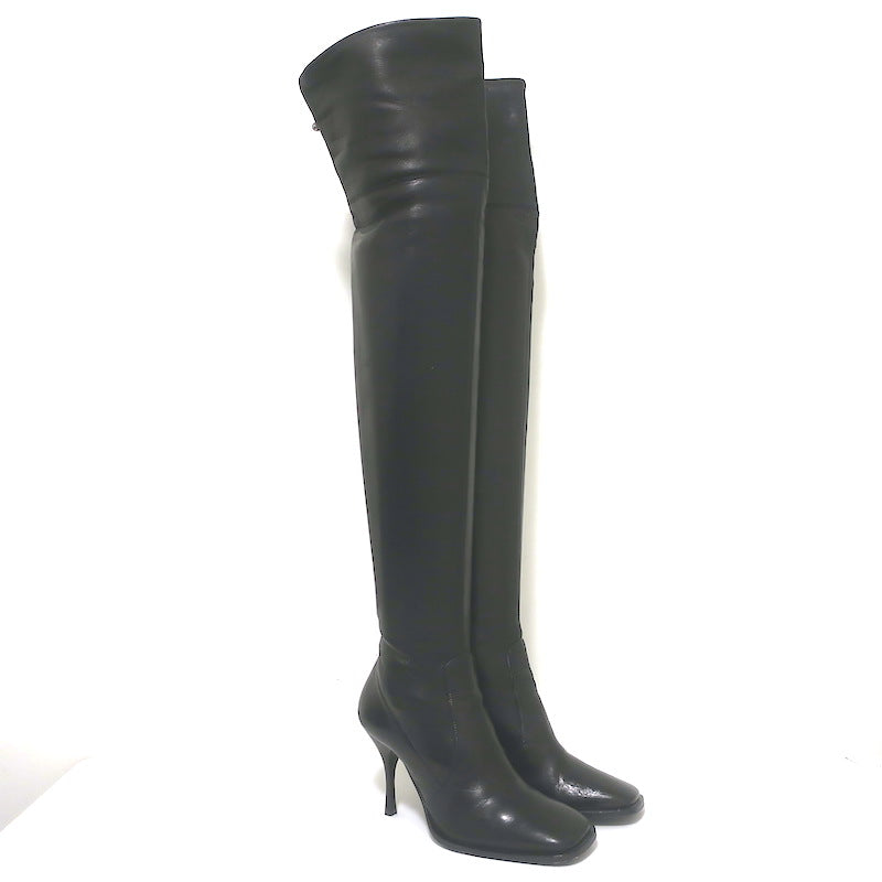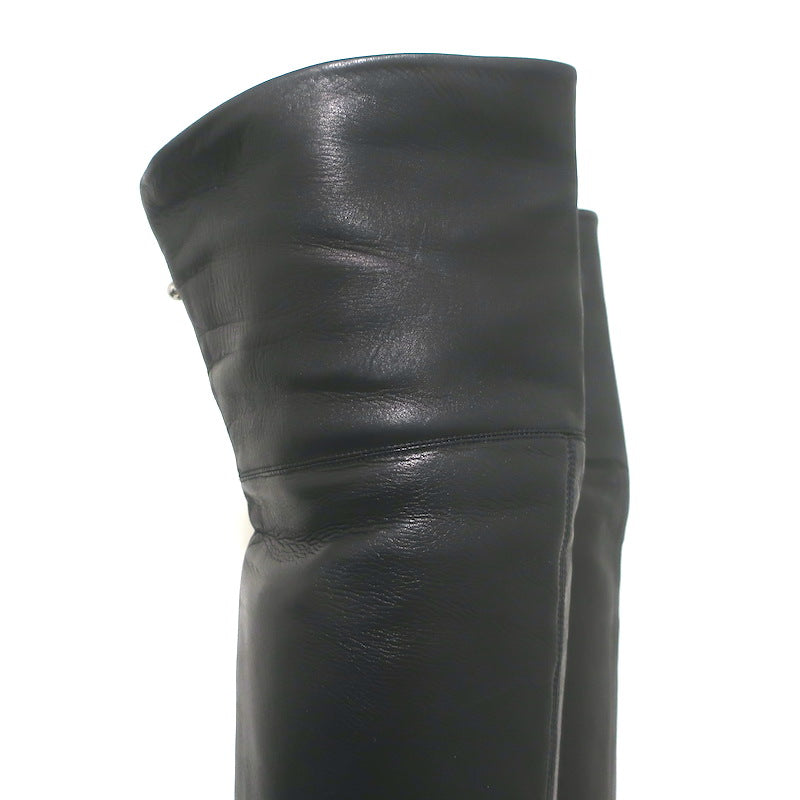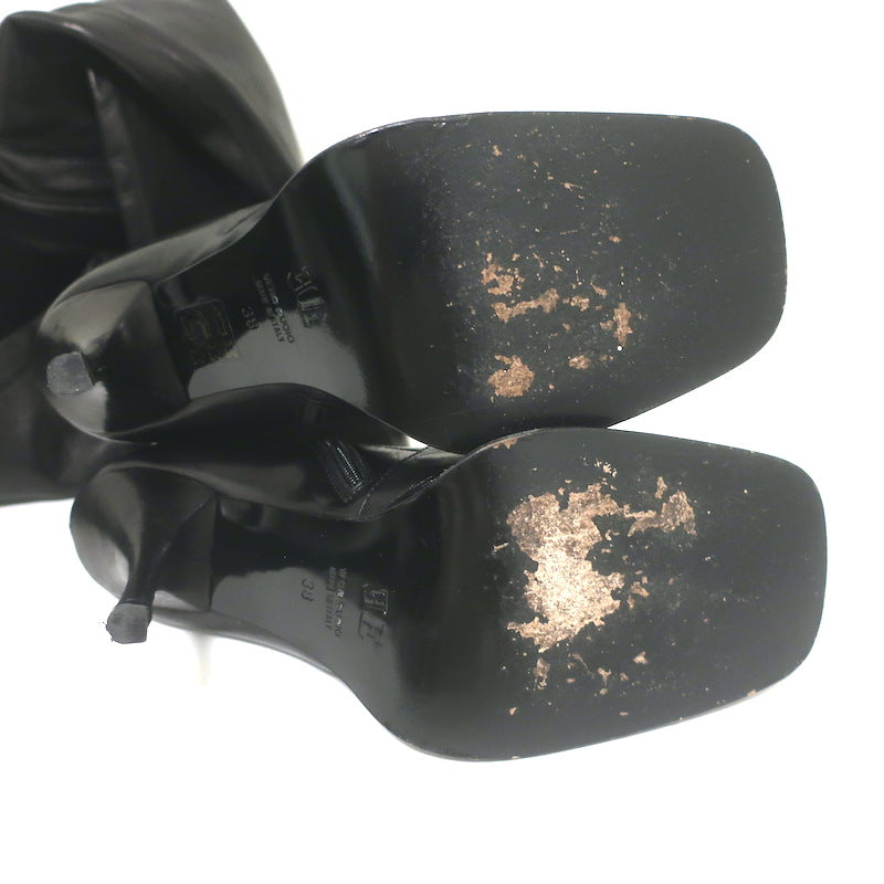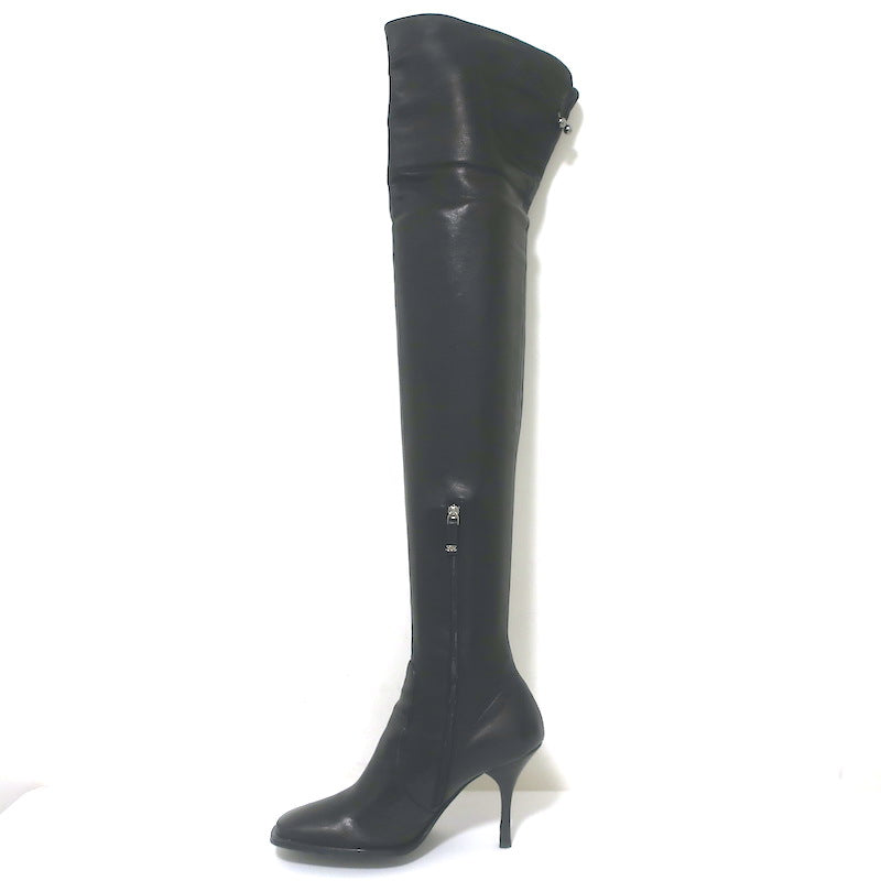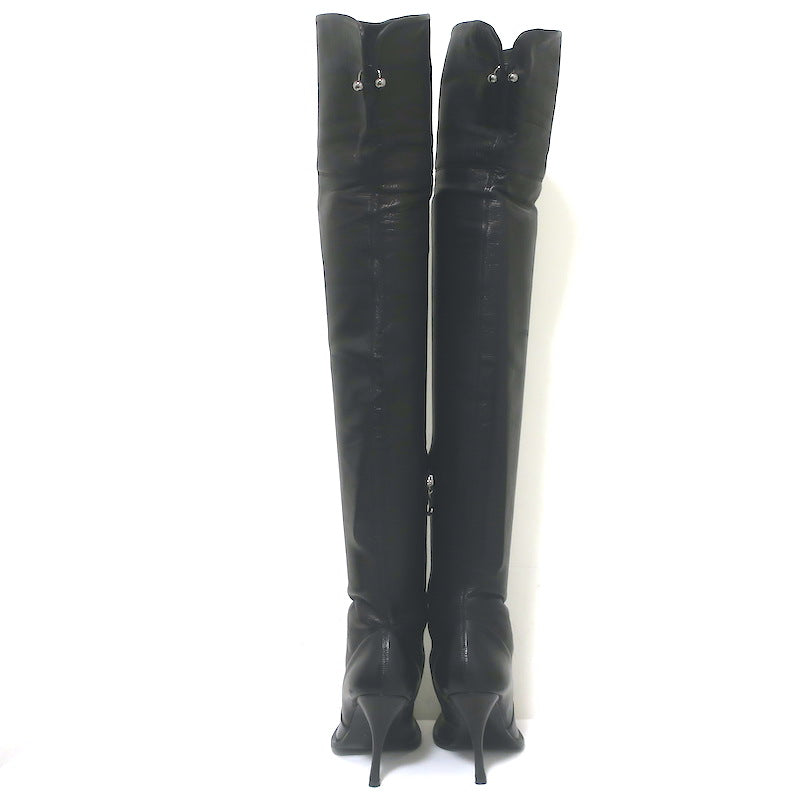 Ermanno Scervino Pierced Thigh High Boots Black Leather Size 38 Measurements