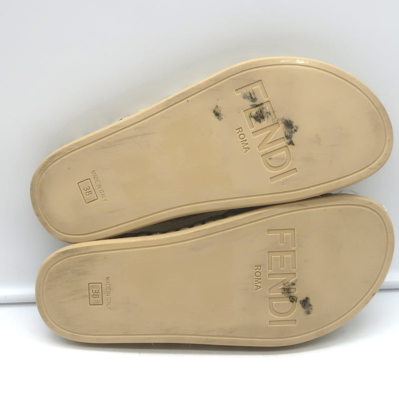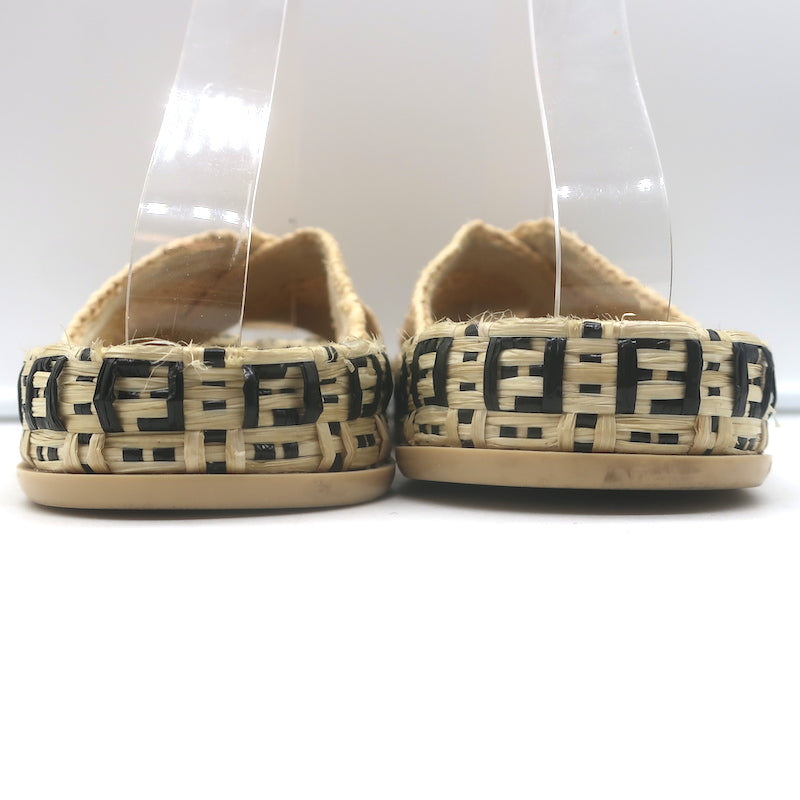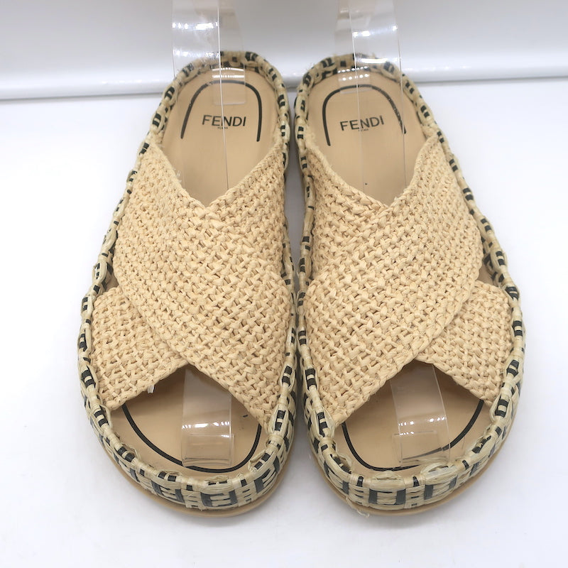 Fendi FF Reflections Raffia Crisscross Slide Sandals Natural Size 38