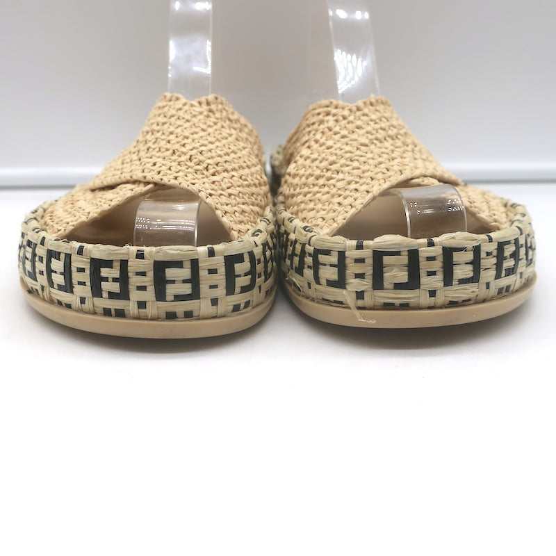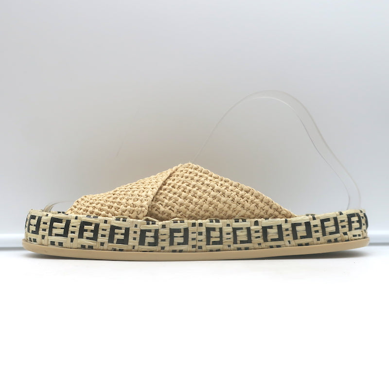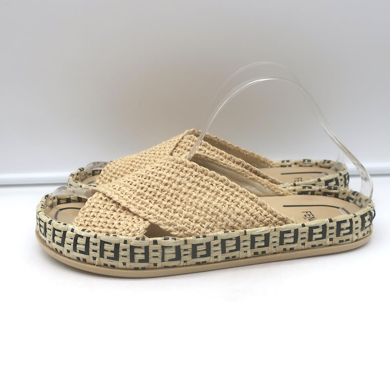 Fendi FF Feel Raffia Slide Sandals Natural/Brown Size 39