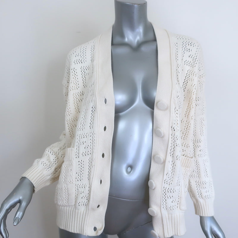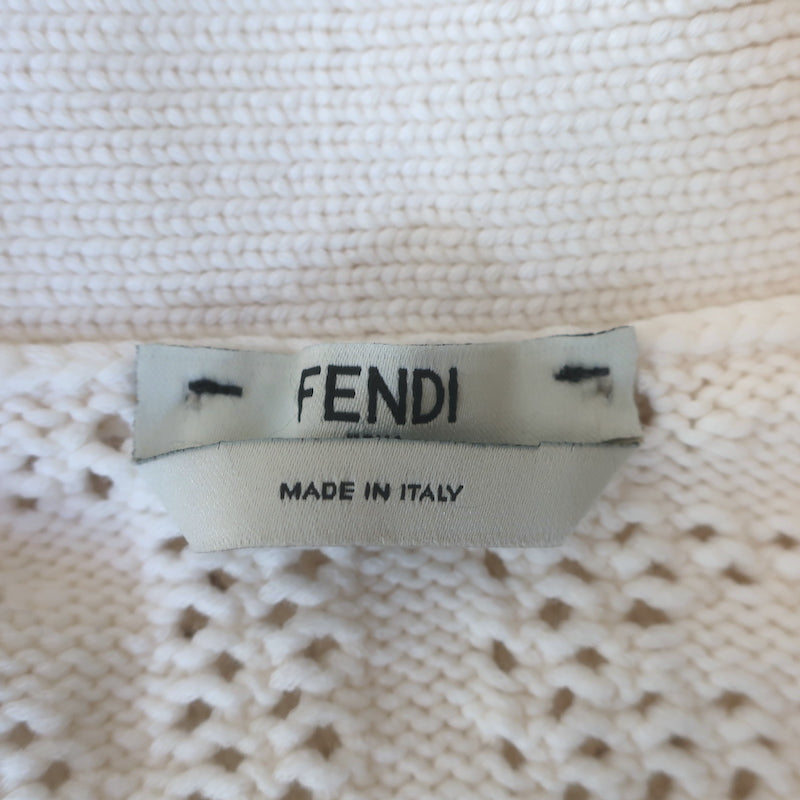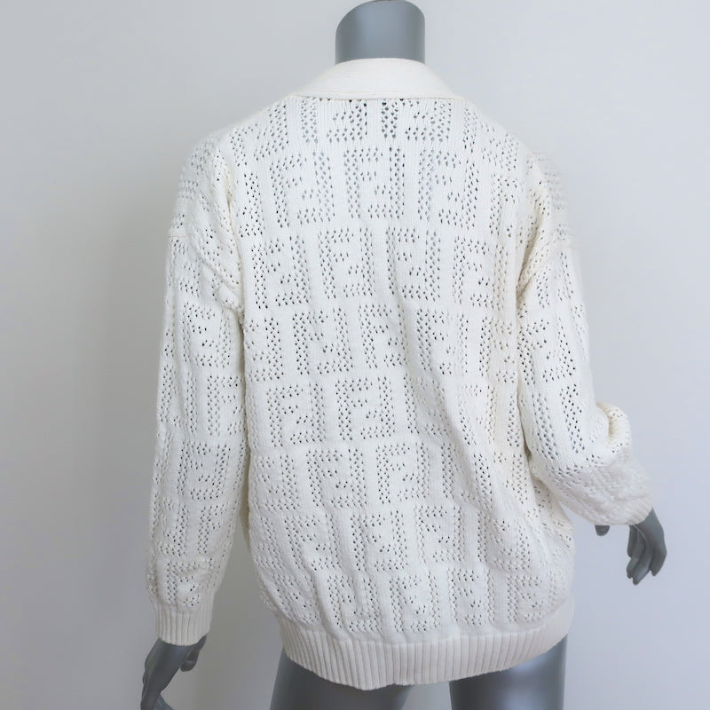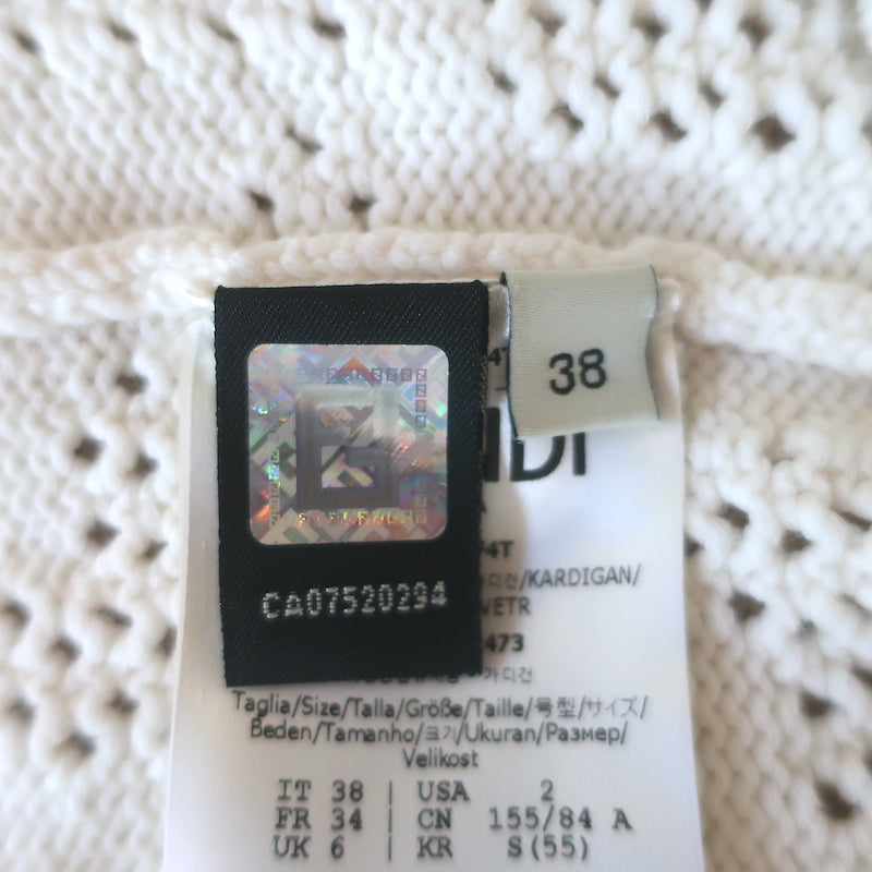 Fendi Forever Fendi Perforated Logo Cardigan Cream Cotton-Blend Size 38