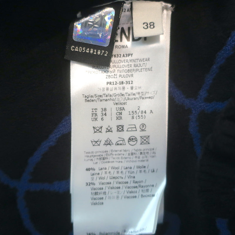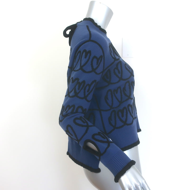 Fendi Scribble Heart-Embroidered Cutout Sweater Navy Wool-Blend Size 38
