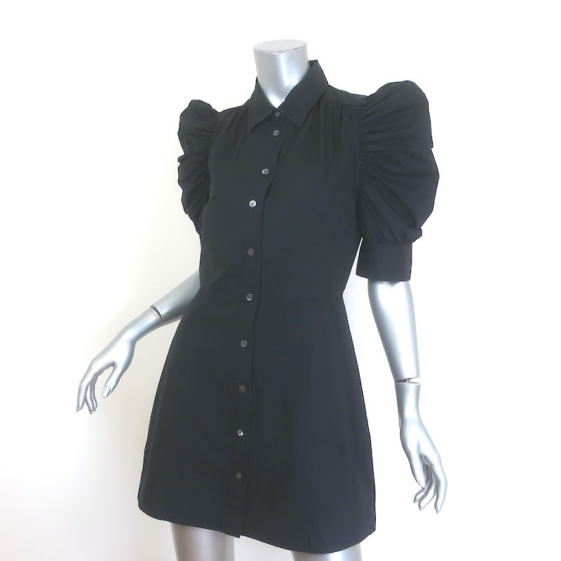 FRAME Gillian Puff Sleeve Mini Shirt Dress Black Cotton Size Small